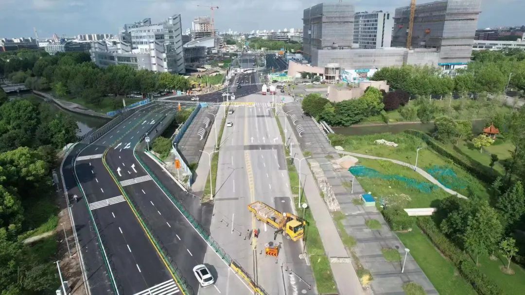 此次导改的莘砖公路为松江区主干道,各时段车流量比较大,在保证车道数量不变,交通不受影响的情况下,在各方共同的努力配合下,于8月5日完成一阶段道路翻交。