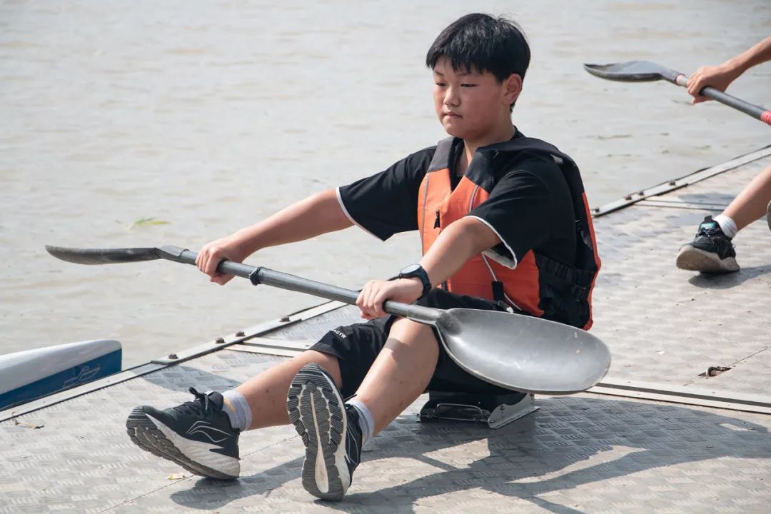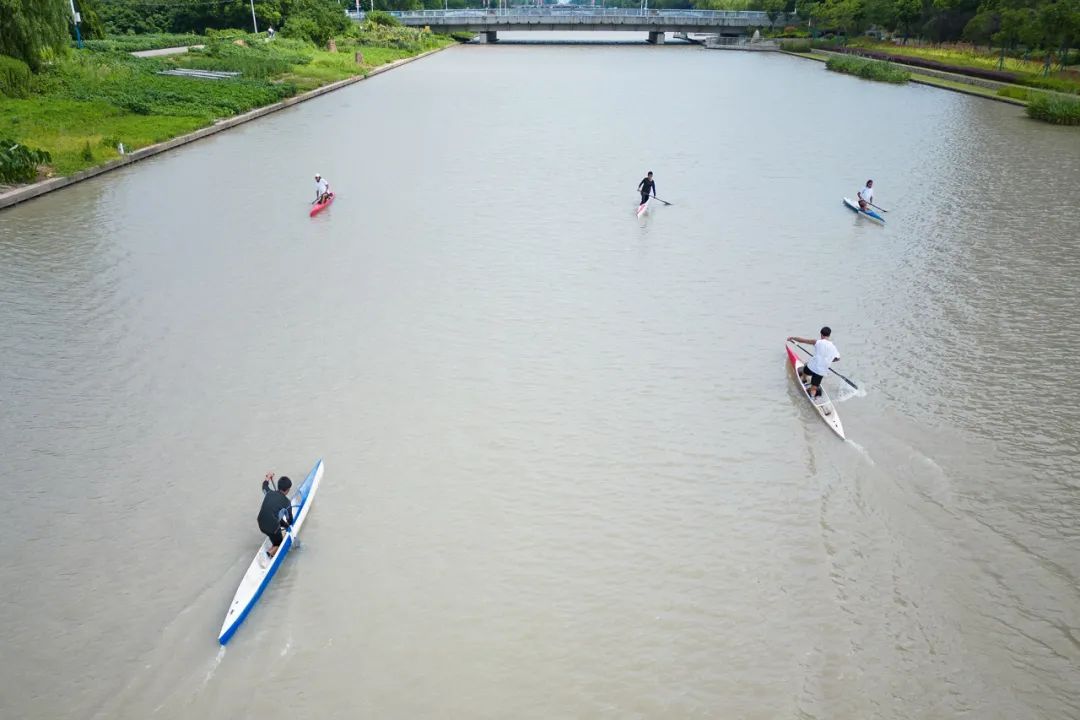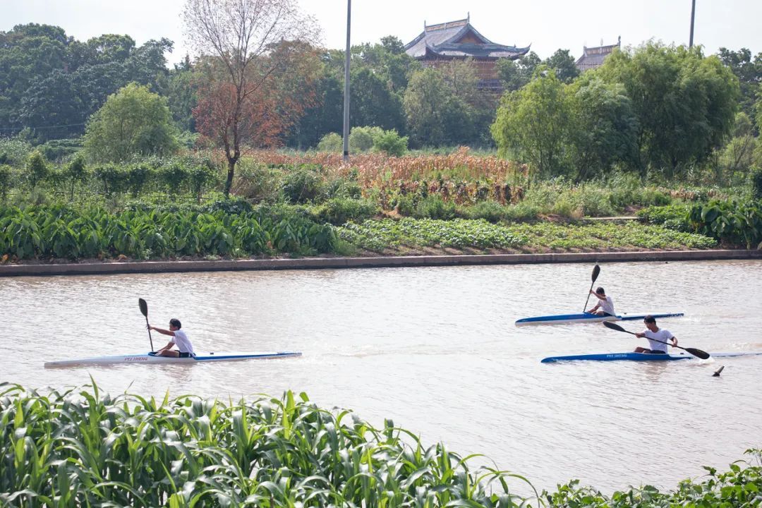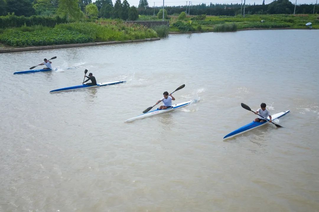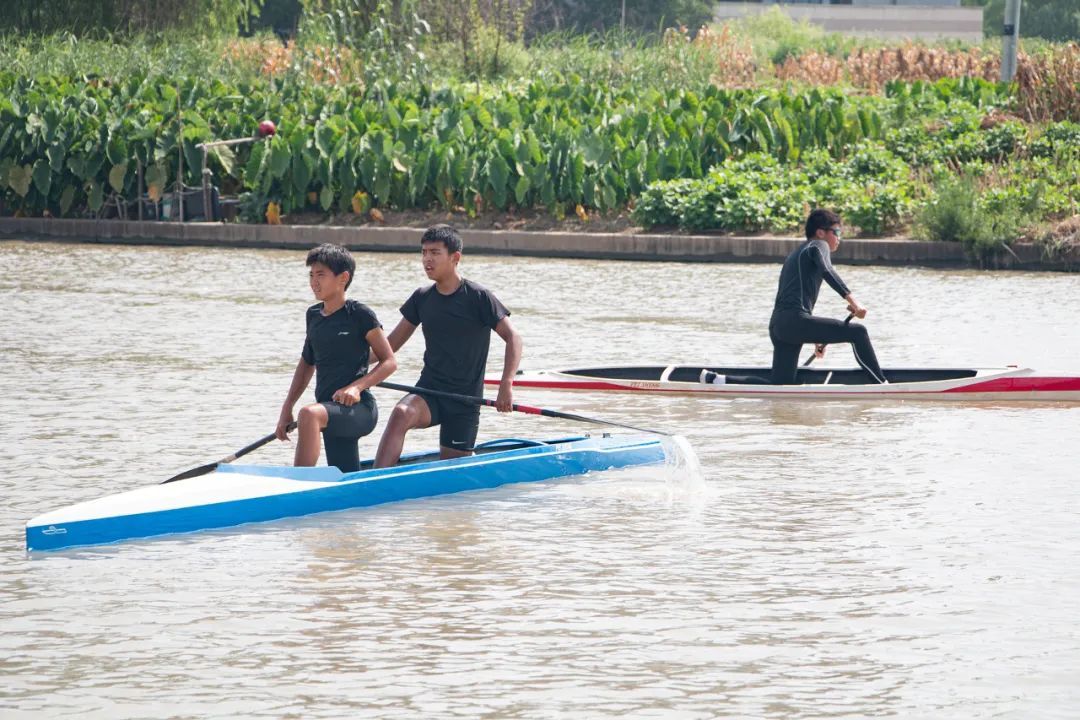 早晨7点半,30多位队员就骑着自行车,陆续赶到老滧河畔的皮划艇训练基地。热身准备完成后,紧张的训练便宣告开始。在队员们奋力而富有节奏的划动下,狭长的小艇在河面上劈波斩浪,迅疾前进。