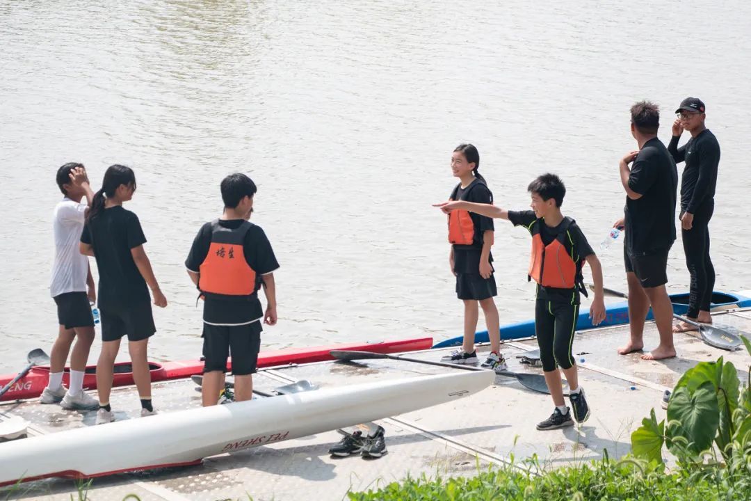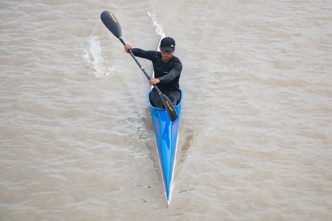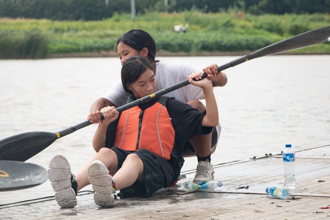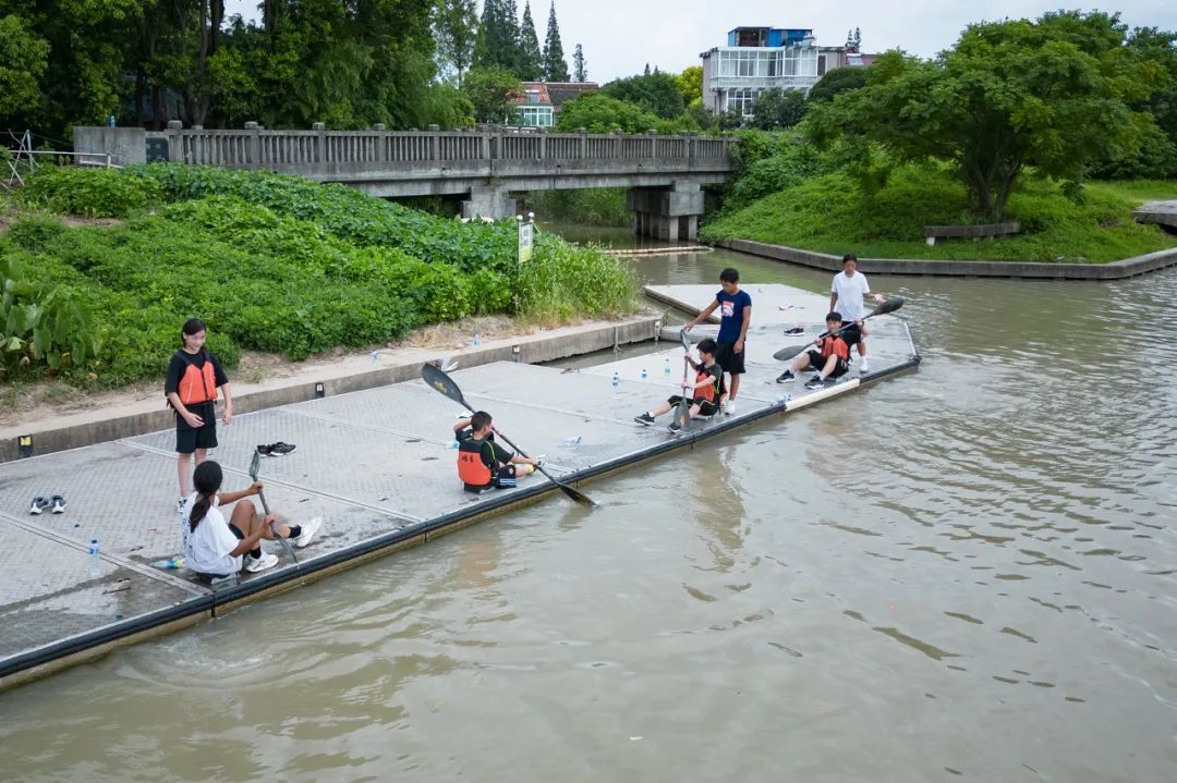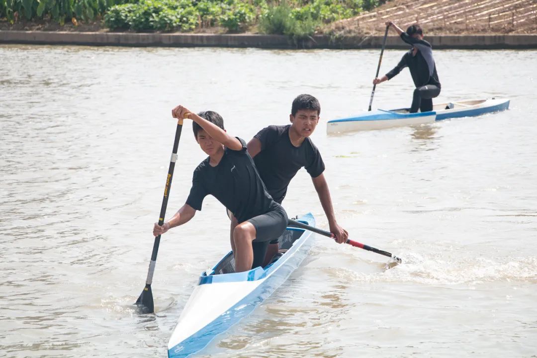早晨7点半,30多位队员就骑着自行车,陆续赶到老滧河畔的皮划艇训练基地。热身准备完成后,紧张的训练便宣告开始。在队员们奋力而富有节奏的划动下,狭长的小艇在河面上劈波斩浪,迅疾前进。