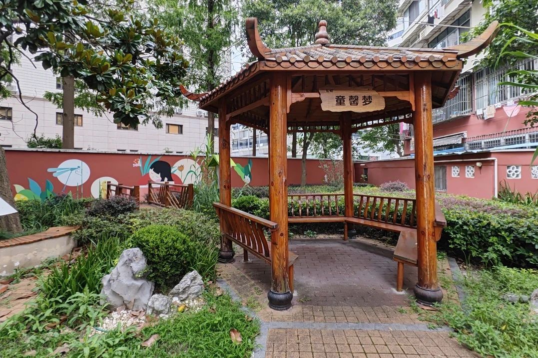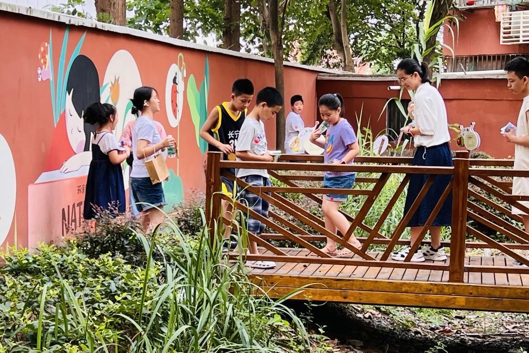 上午9点,长虹小区的“童馨梦”绿化空间欢笑声阵阵。在这里,郁郁葱葱的绿植让空间焕发出勃勃生机,凉亭、旱桥、昆虫之家坐落其间,增加了趣味性与互动性,尤其是墙面上充满童趣的彩绘图案,赋予了空间个性与活力,也让社区青少年更有归属感。
