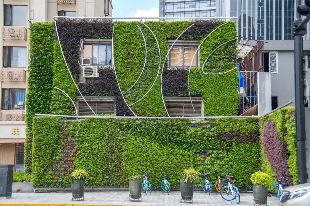 垂直绿化巧妙突破了城市绿化平面化瓶颈,可有效减少城市热岛效应、净化空气,提高绿化覆盖率和空间绿视率。“见缝插绿”的立体绿化让城市绿意盎然。