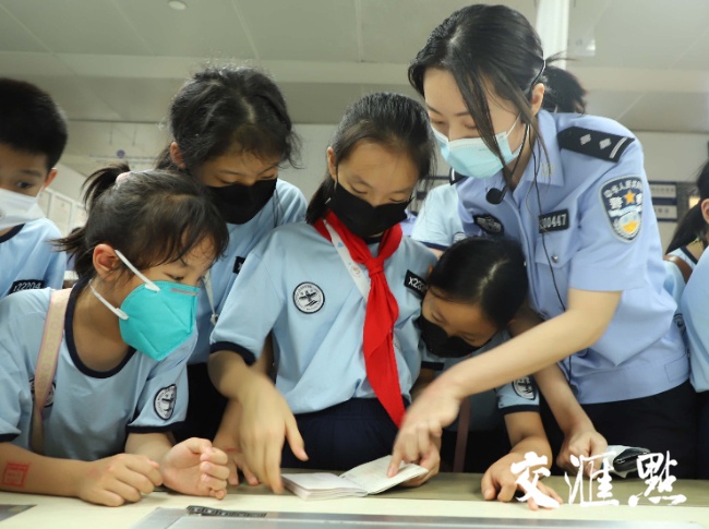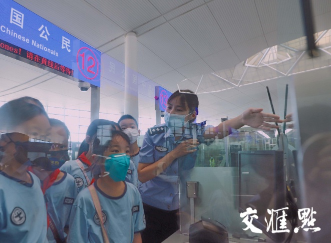 “出入境需要准备什么?”“怎么辨别真假护照?”“护照破损了能自己用胶带粘吗?”8月10日,来自江苏少年警校夏季训练营的50余名师生,来到南京禄口国际机场出境大厅零距离体验边检工作,萌娃们的好奇心高涨,脑洞大开,移民管理警察一一解答孩子们的问题。