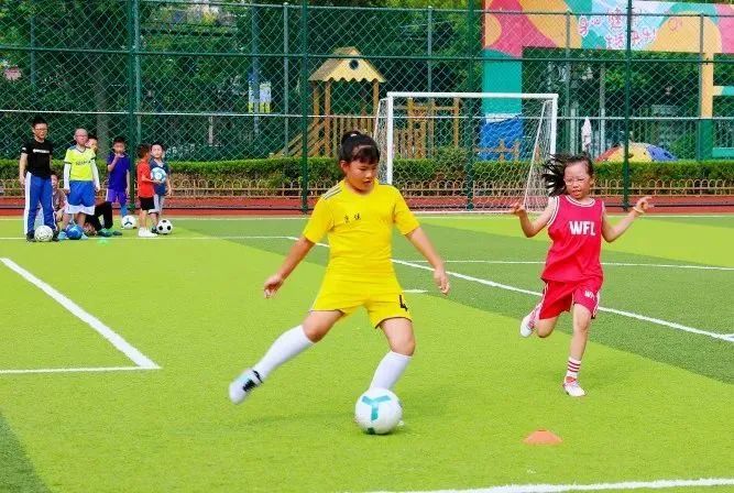 随后,小球员们在教练的带领下开展了带球、传球、射门等足球基础项目练习。训练中,教练为小球员们指点步伐,讲解在运动中需要注意的要素,传授了作为球员的运动心得。