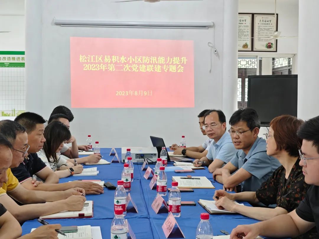 近日,松江区防汛办联合区水务局、房管局在中山街道花桥新村联合召开易积水小区党建领航2023年第二次党建联建专题会。区水务局副局长、房管局副局长参加。