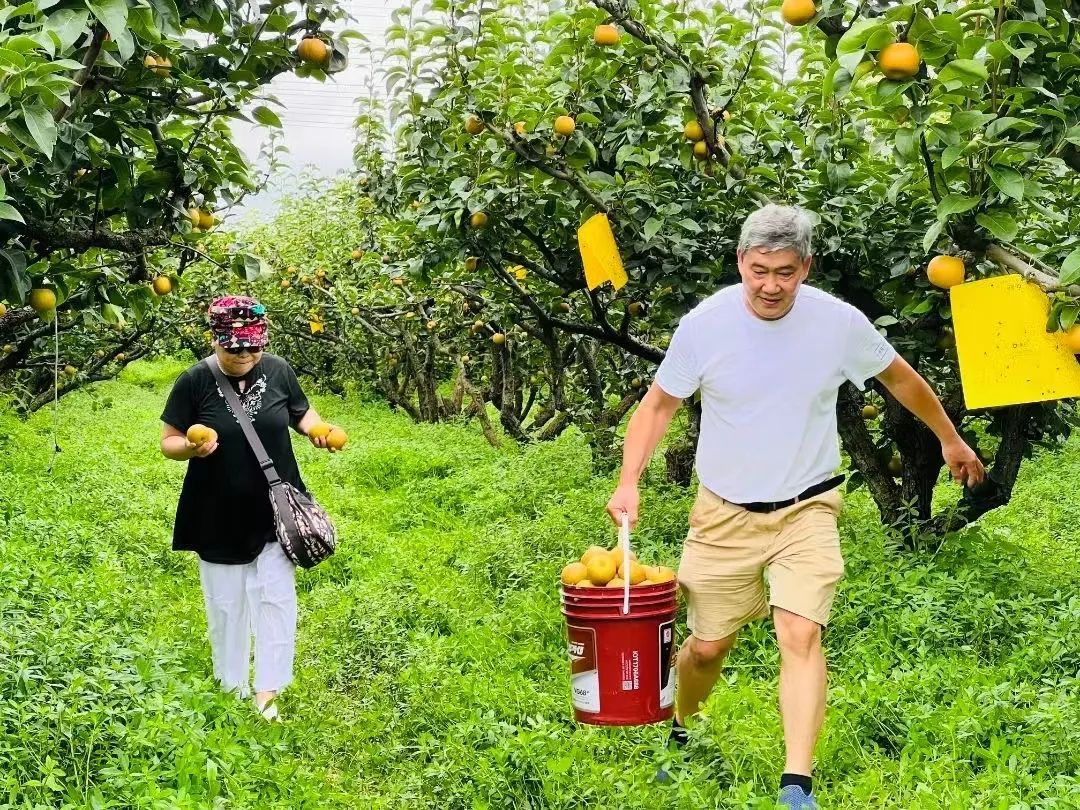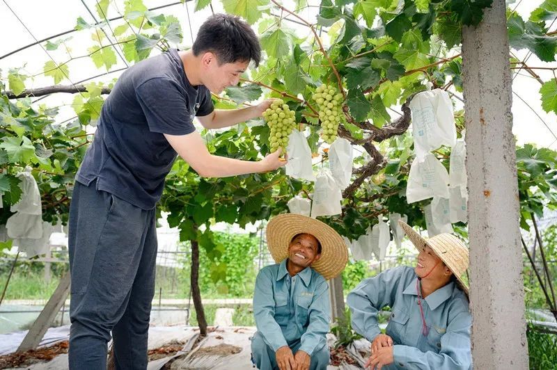 盛夏炎炎丰收季,果园迎来累累硕果,酝酿果农的辛勤与汗水。“醉金香”“巨玫瑰”“永优一号”“阳光玫瑰”,品种多样的葡萄在阳光的映照下,散发出淡淡的果香,让人忍不住咽下口水。这里还有“早生新水”“翠冠”梨、“锦绣黄桃”等,给想来亲自体验采摘的游客提供多样的选择。