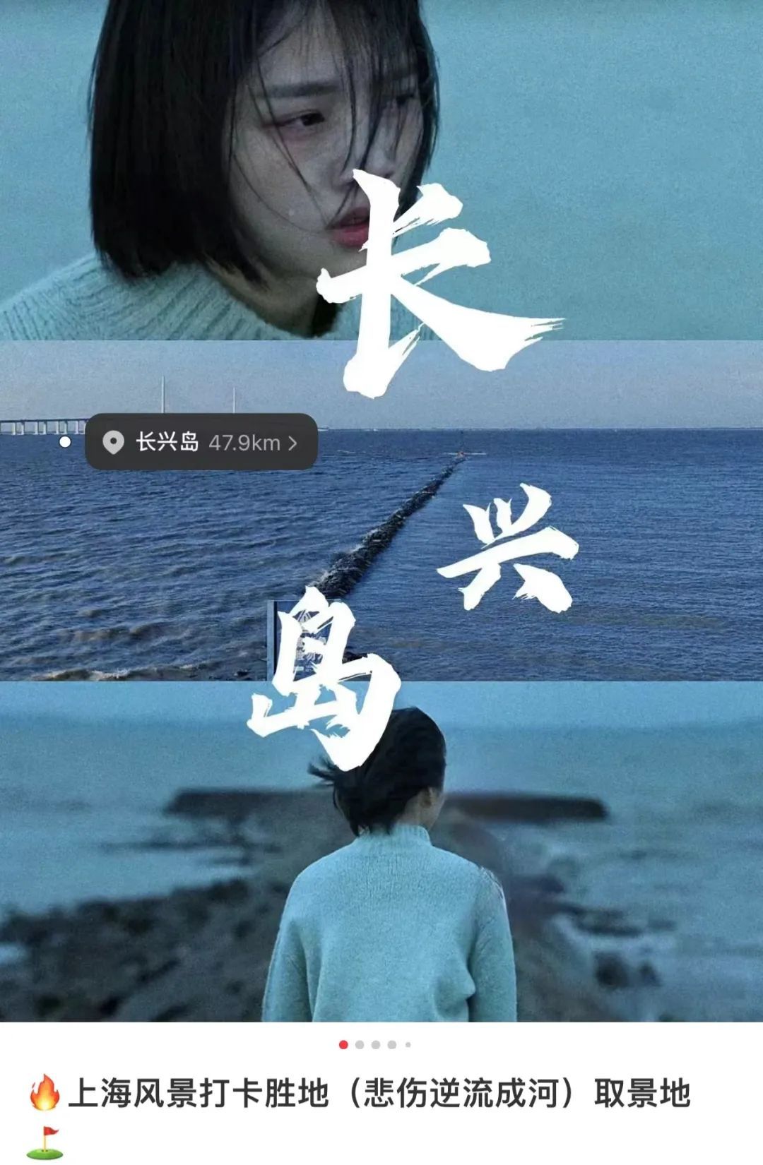 莫让悲伤逆流成河 谨防落水 影片《悲伤逆流成河》中的片段取景地位于长兴岛某一丁坝。观众们乐此不疲打卡拍摄地,某旅行App上甚至有大量文章详细介绍打卡攻略和具体路线。 区海事局郑重提醒:影片中的拍摄地,水流湍急,涨落潮快,具有很大的风险隐患,打卡需谨慎! 根据统计,人员落水风险较大的位置为: 1、上海长江大桥:主桥、辅桥设计标高为60米、40米,此处落江几乎无生还可能。