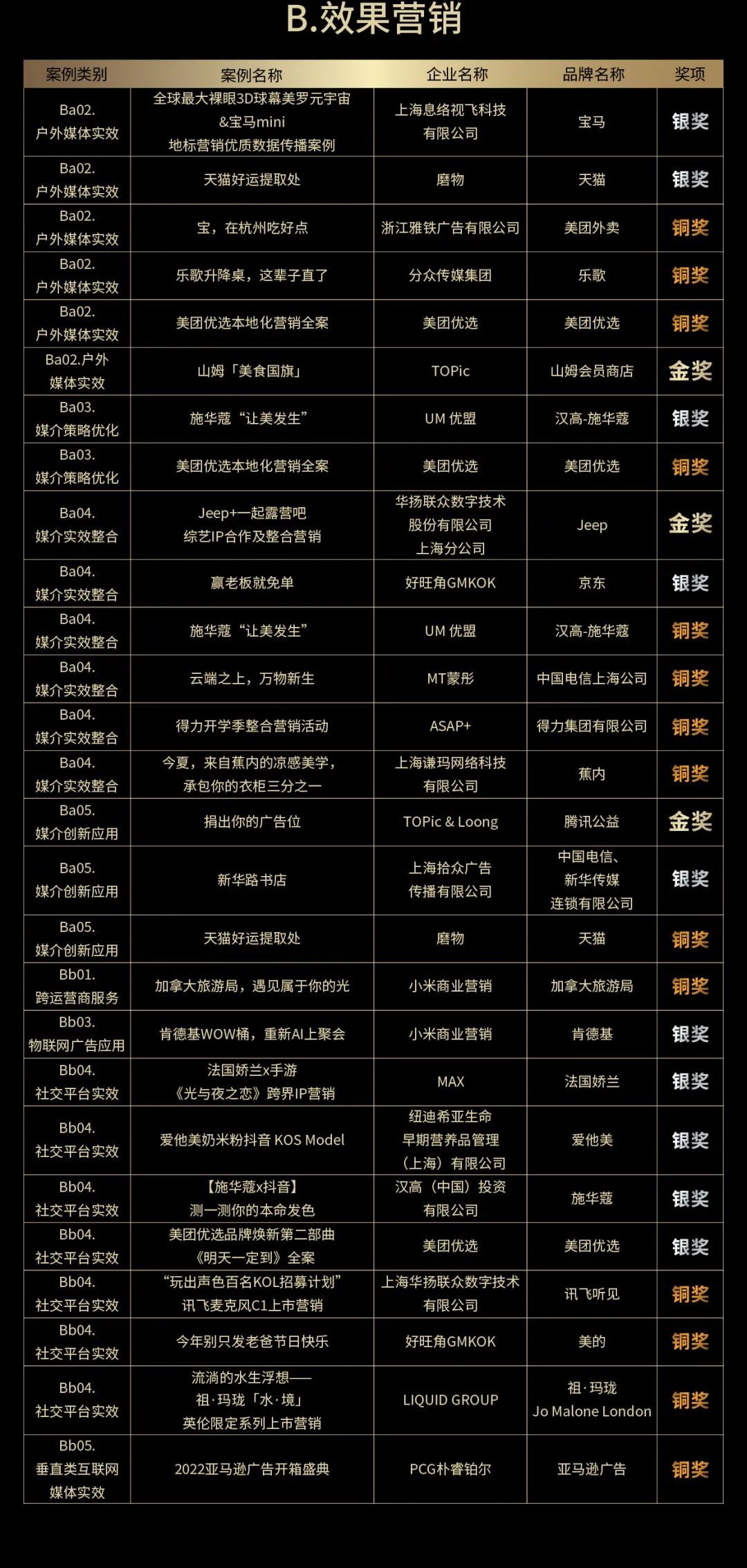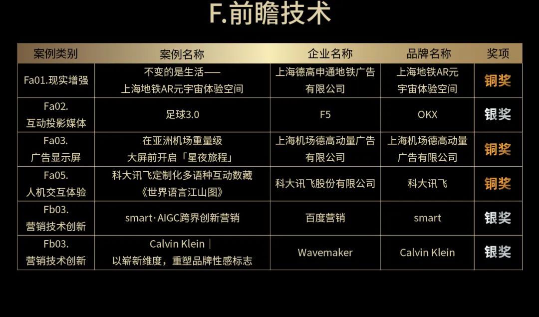 8月11日,2023上海国际广告奖于上海市普陀区环球港凯悦酒店举行颁奖盛典,共诞生325个等级奖项,包含1个全场大奖、28个金奖、92个银奖、204个铜奖。