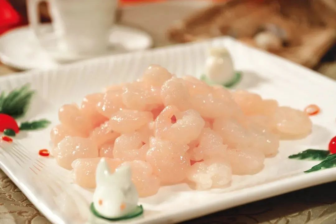 “水晶虾仁”是正宗沪菜,清炒的虾仁不加配料,鲜明透亮,据说是玛格丽特公主在品尝后形容虾仁像一颗颗水晶而得名,也引得食客们争相排队品尝。