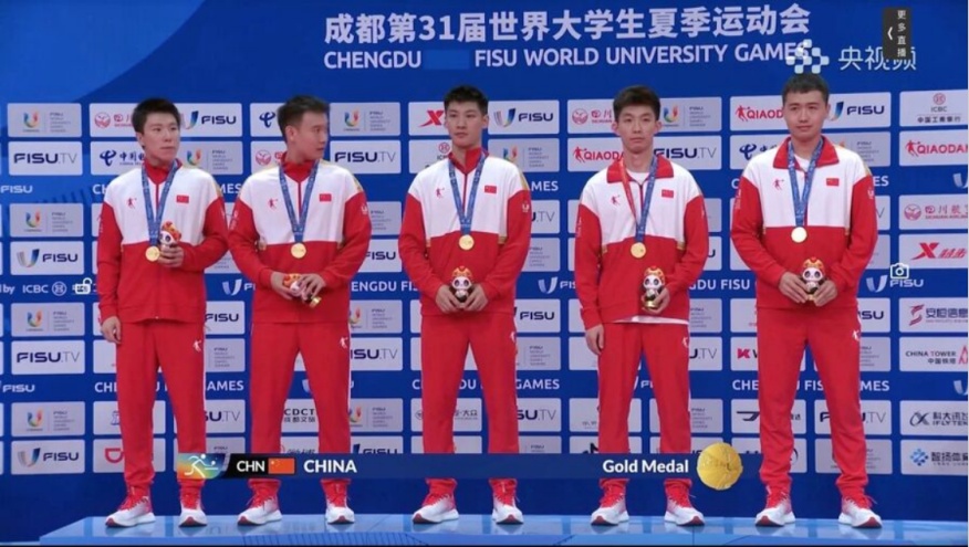每一块奖牌都沉甸甸,含金量十足:游泳赛场,上海运动员有7个项目的成绩打破了赛会纪录。刚刚在游泳世锦赛上大放异彩的同济大学学生覃海洋继续着自己的精彩表现,以5金6破赛会纪录的成绩成为大运会赛场上的焦点;在乒乓球赛场乒乓球项目,上海学子包揽全部7枚金牌,用实力在世界赛场上继续将国球发扬光大。这其中,上海体育大学的钱天一在本届比赛中收获女团、混双、女双和女单金牌,加冕本届大运会“四冠王”,实现了金牌大满贯。