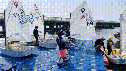 刚来到海边,小编就被眼前捧着帆的小朋友所吸引,小小的身体竟有大大的能量。上前询问才知道,原来他们是来自金山小学的学生,在这里训练有一段时间了,帆船这项运动是学校的特色项目之一。他们一边说着,一边给自己的船安装上了帆。随后,指导老师检查好了每位学生的设备,大家便拿着稳向板和舵下海啦!