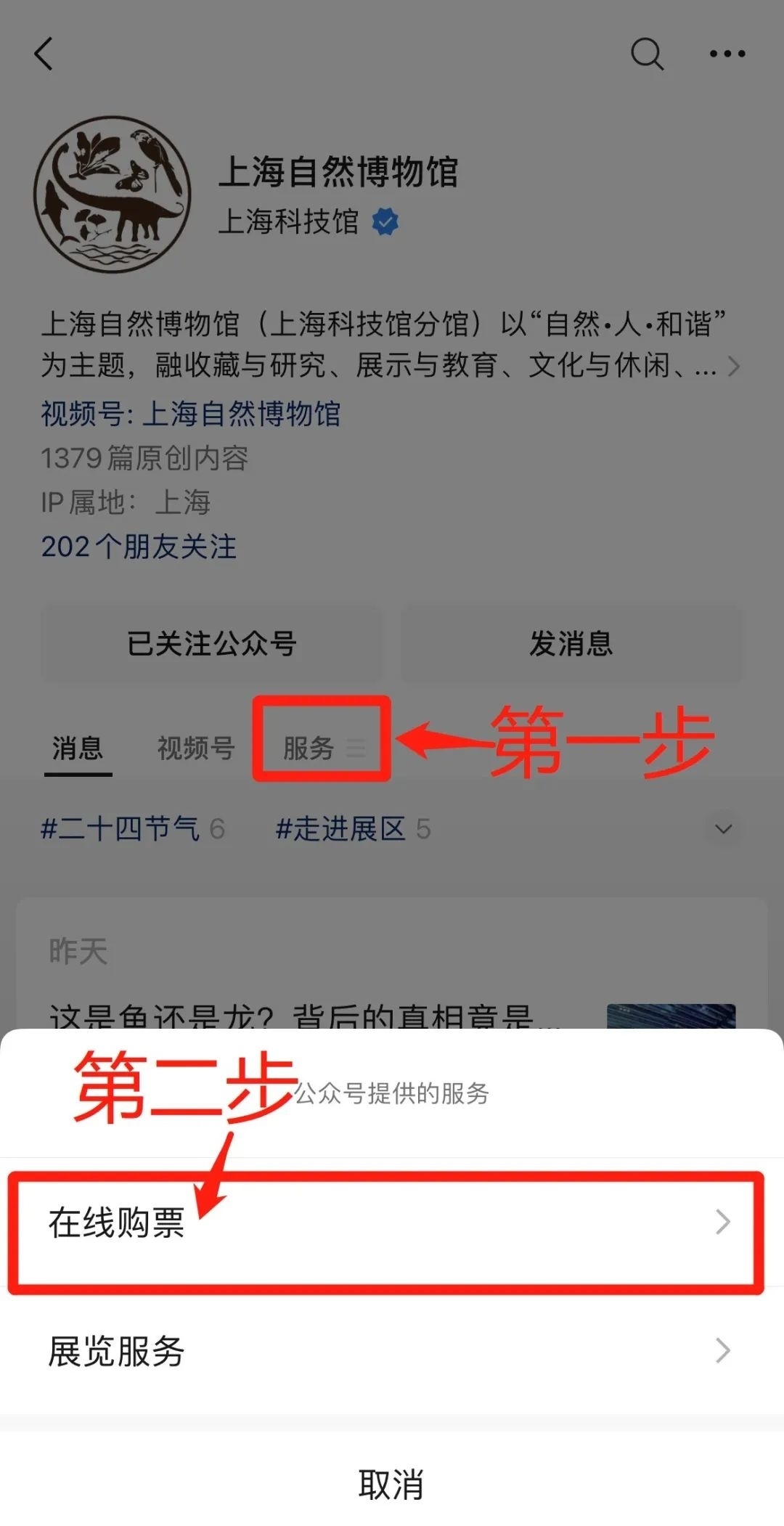 2.观众只能通过官方渠道“上海科技馆自然博物馆天文馆”小程序、“上海自然博物馆”微信公众号进行线上实名制分时段购票;对于使用网络技术购票存在困难的观众,现场设立票务服务点提供协助购票服务。