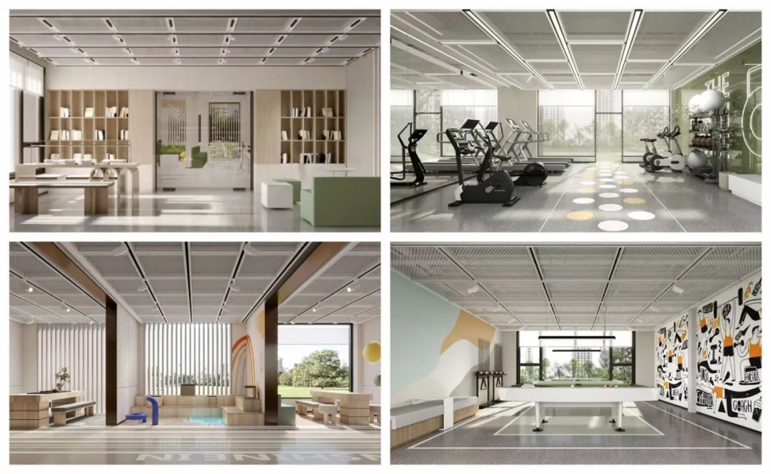 “中岚居”在规划初期就注重打造生态共享的绿色社区,7000㎡精心设计的园林绿化和800㎡的共享公区,为住户提供了一个与自然和社交完美融合的休闲空间。住户可以在园林小径上漫步欣赏、沐浴绿意,感受返璞归真的悠然心境。引人入胜的雕塑更是为整个环境增添了艺术气息。绿树掩映,雕塑点缀,置身其中宛如世外桃源。此外,项目在多个楼层布局开放式公共活动区域,既满足住户便利生活的需求,也丰富社交生活的可能。6号楼一层提供了封闭空间的多功能厅、竞技室、高配健身房、台球室和人才红色驿站等,满足了住户多样化的需求。而7号楼的1层则配备了书吧、自习室、干衣洗鞋区、菜鸟驿站和开放的社区活动区,为住户提供了一个共享学习和社交的理想场所。4号楼的9层和5号楼的8层还特别配置了室内及半室外空间的共享厨房,为住户提供了更多美食制作和社交互动的机会,让大家在美食中共享欢乐时光。不仅如此,5号楼的9层还为住户打造了一个独特的星空露台,夜晚在此仰望星空,定会令人心旷神怡。健身房更是社区共享公区内的一大亮点。在这里,世界三大健身器材品牌的必确健身设备汇聚一堂,提供跑步机、椭圆机、划船机、小飞鸟、腿部背部训练椅等多种有氧和力量训练选择,为住户们的健康保驾护航。此外,公区内还将定期举办丰富多样的社群活动,从王者荣耀比赛到台球比赛,再到读书交流会、桌游和手工DIY,每个人都能找到自己喜爱的社交方式,丰富自己的业余时光。