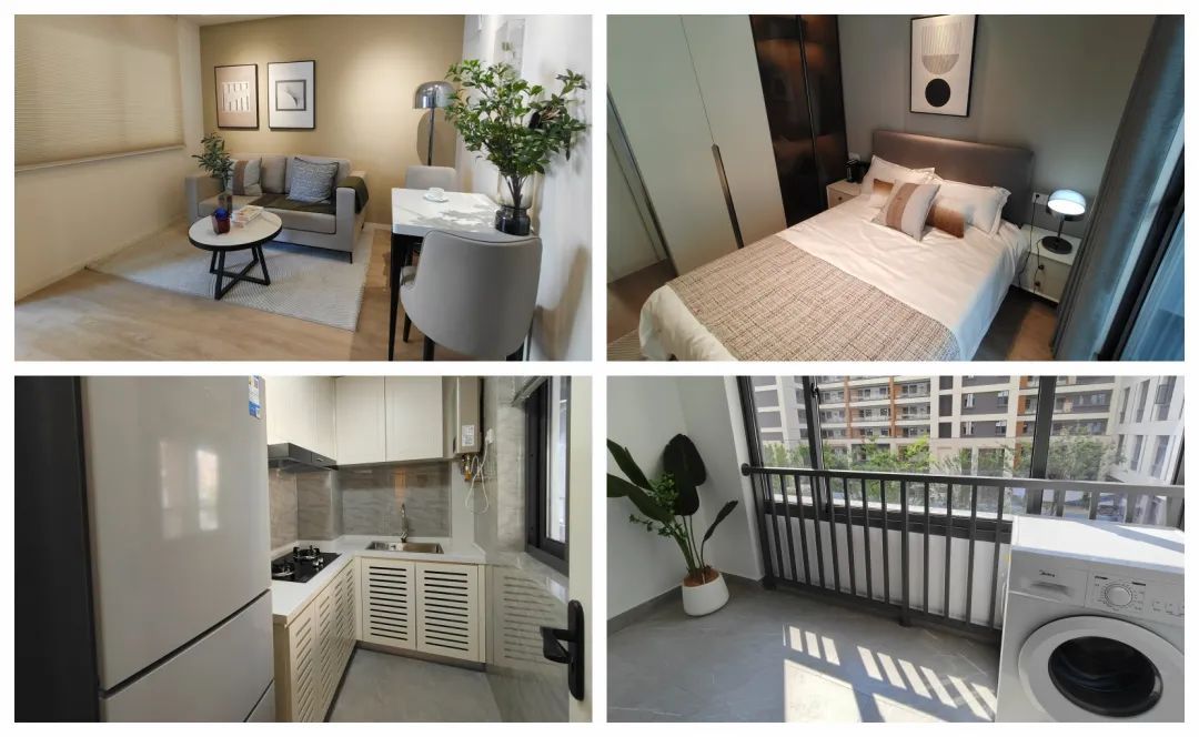 “中岚居”以独特的创意,为单身青年、精致白领、情侣夫妻甚至是三代同堂家庭提供了多种户型选择,包括35㎡一室、46㎡的精品一室、46㎡的一室一厅以及71㎡的两室一厅,丰富的房型满足了不同人群在不同生活阶段的租赁需求。户型的设计灵感源自现代生活方式的多样性,巧妙地融合了功能性与美感。宽敞的布局使得大部分房间都能享受到充足的南向阳光,开放的设计也为居住者提供了更多的休闲空间。室内装修秉承了通透和简约的设计风格,高级灰的木质材料、柔软的棉质软包、茶色玻璃以及“跃动”的橙色皮革,每一个元素都散发出浓厚的生活气息。玻璃衣柜内的感应灯、分区设计的储物空间、隐蔽式的把手以及精心设计的家具线条,每一处都体现了对细节的执着。值得一提的是,公寓还细致考虑到住户的实际生活需求。斜插五孔插座的设计,巧妙地解决了过去两孔与三孔插座不能同时使用的难题;符合人体工程学的灶台和水槽高度,让做饭和清洗变得更加轻松;品牌家电的使用,则进一步提升了居住者的生活品质。此外,智能水电表、智能门锁、智能监控以及24小时安保服务的引入,也为住户的安全和便捷提供了强有力的支持。这种深入关怀和创新精神,不仅赋予了每个房间以生活的温度,更让住户们享受到了智能化的品质生活。