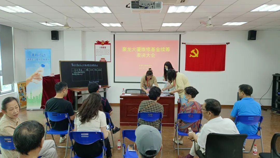 过去半年里,在聚龙大厦所属交通公园居民区党总支、居委会以及聚龙大厦业委会、物业公司的不懈努力,以及街道领导、街道城运中心、街道综合行政执法队、芷江西路派出所、业主服务中心的帮助下,续筹工作得到了大部分居民的理解与配合,众人一起化解了这场“专项维修资金”严重不足的难题。