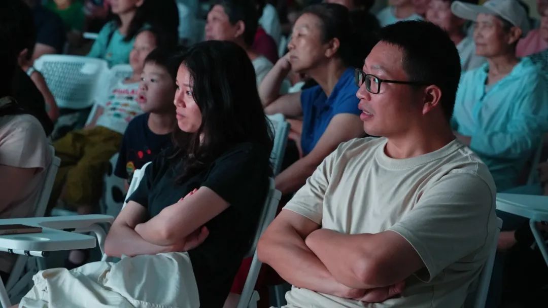 周婷婷来自互联网企业哔哩哔哩,当天一下班就赶了过来,虽然错过了开场,也找不到空座位,但她还是一直站在后排观影,“喜欢今天这种社区邻里相聚观影的独特氛围,我觉得在上海,看一个上海的电影,再跟老爷爷老奶奶聚一聚,体验感很好。”