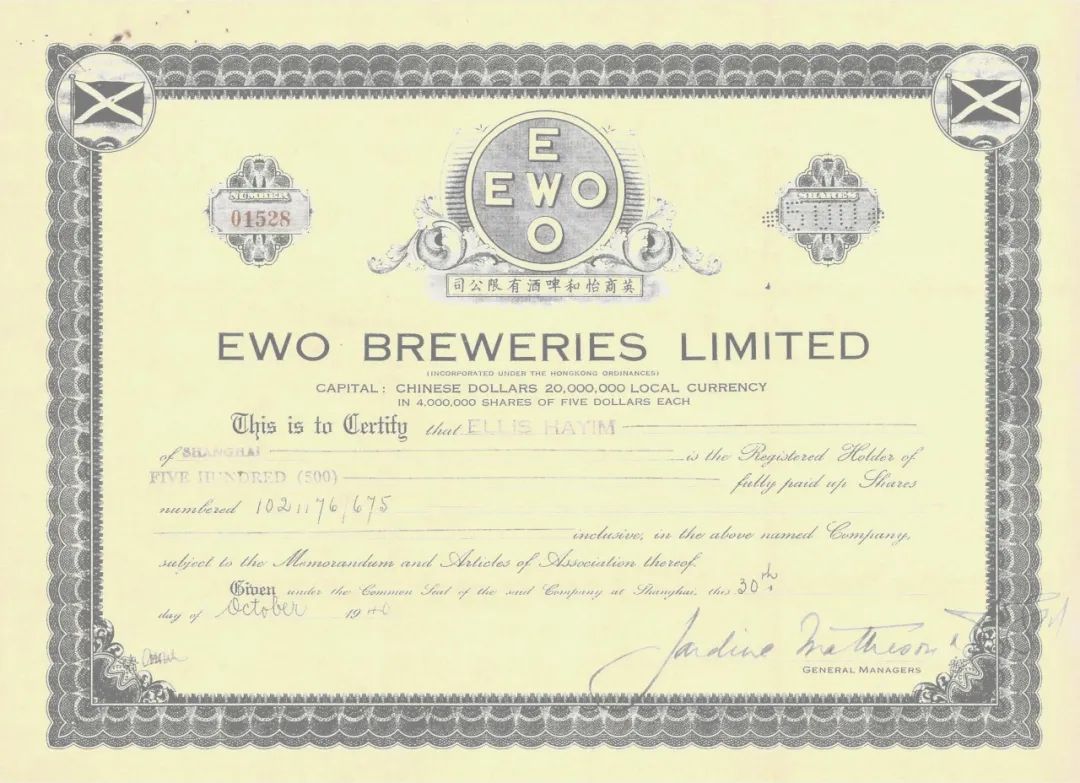 当时的怡和啤酒厂共投资500万元,分做500万股。啤酒厂建成后,英商立刻将这个厂股票的75%(即375万股,每股一元)陆续投入股票市场。由于当时处于半殖民地半封建时期,国内政治不稳定,经济混乱,有资产的人担心自己的资产没有保障,因而要在市场上寻求外国人办的工厂的股票购入。英商利用投资者这种心理,把股票的面值从1元提到2元、3元甚至5元、6元1股。