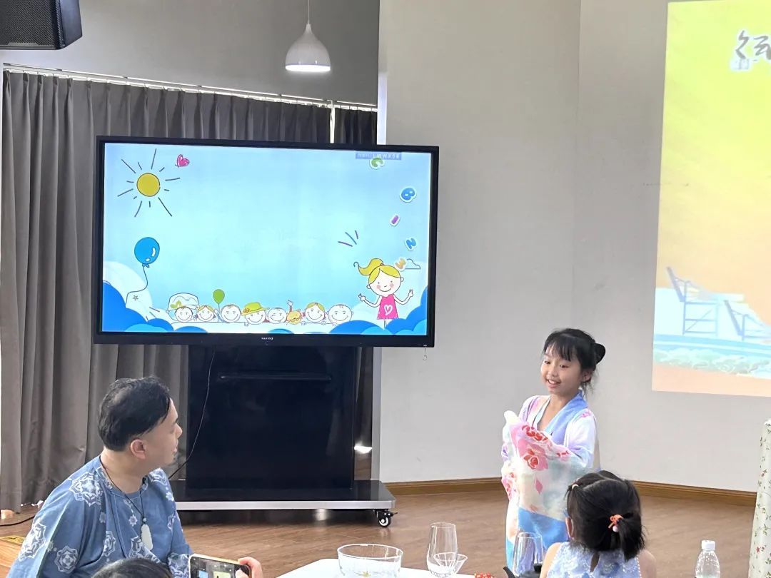 在悠扬的音乐声中,郭兰开始了茶艺表演。她端坐在茶桌前,从洗杯、温杯,到投茶、注水,再到奉茶、品茶。每一个动作都轻柔、舒缓,如同行云流水一般,充满了美感。在她的一招一式下,经过水的充分浸润后,一朵茶叶的“花朵”在茶水中缓缓盛开,活动室里飘荡着清新怡人的茶香。刚才还在叽叽喳喳、活泼热闹的小朋友此刻也都鸦雀无声,他们睁大眼睛,静静地注视着台上老师的一举一动,仔细地听着老师的讲解,沉浸在绵延千年的中国茶文化里。
