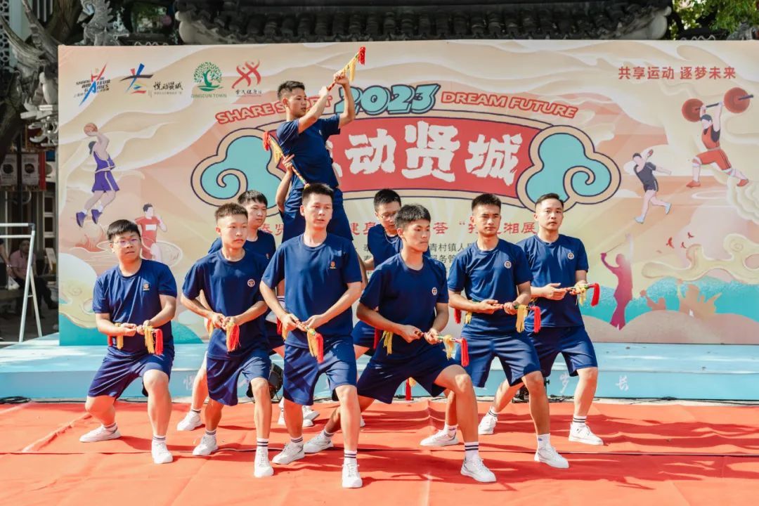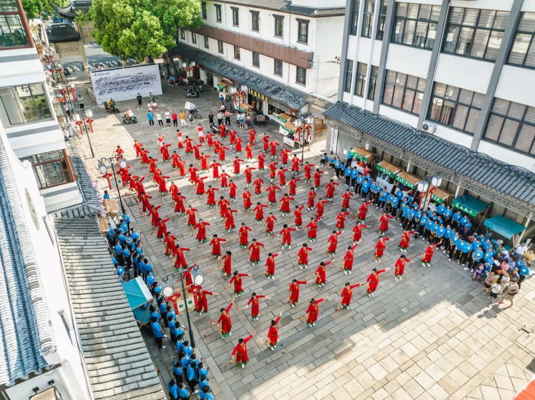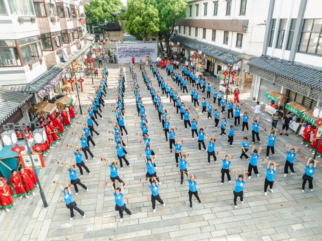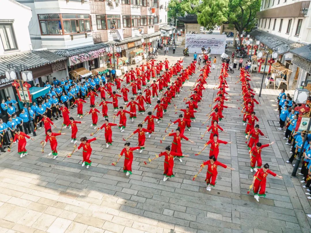 盛夏八月,正值“8·8”全民健身周,为丰富群众的文体生活,大力推广青村镇“一镇二品”之一的非遗特色健身项目“打莲湘”,8月12日上午,2023“悦动贤城”奉贤区全民健身运动“荟”打莲湘展演活动在青溪老街隆重举行。来自奉贤区各街镇、开发区、头桥集团及青村镇的20支队伍,近400名各年龄段的打莲湘爱好者齐聚一堂,呈现了一场精彩的视觉盛宴。