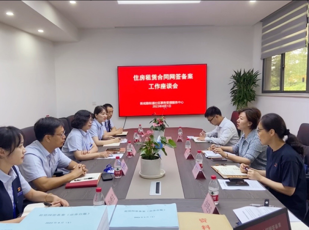 会上,陈静听取了新成路街道社区事务受理中心对辖区内上半年租赁网签业务工作专题汇报,实地查看了受理窗口、业务操作界面并抽查了租赁业务档案材料。双方就住房租赁网签工作中遇到的问题进行了深入交流。