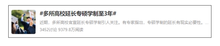 过去几年,国内多所高校已经开始对研究生学制进行调整,延长学制,尤其是专硕学制,成为了一种趋势。去年10月,话题#多所高校延长专硕学制至3年#一度冲上热搜,引发广泛关注。