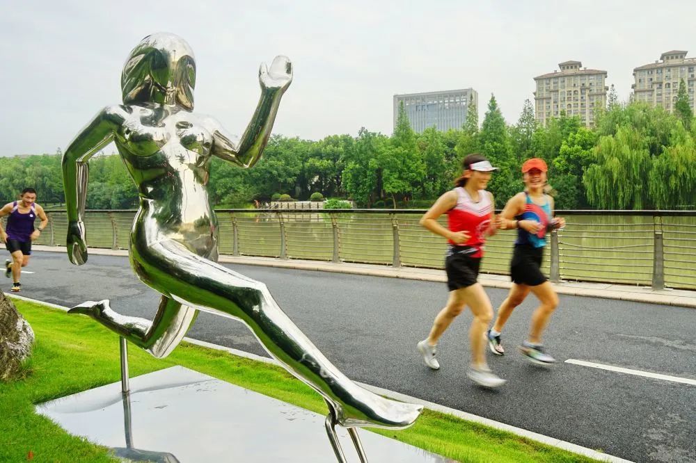 8月8日,市民在浙江省嘉兴市南湖区凌公塘文化主题公园晨跑