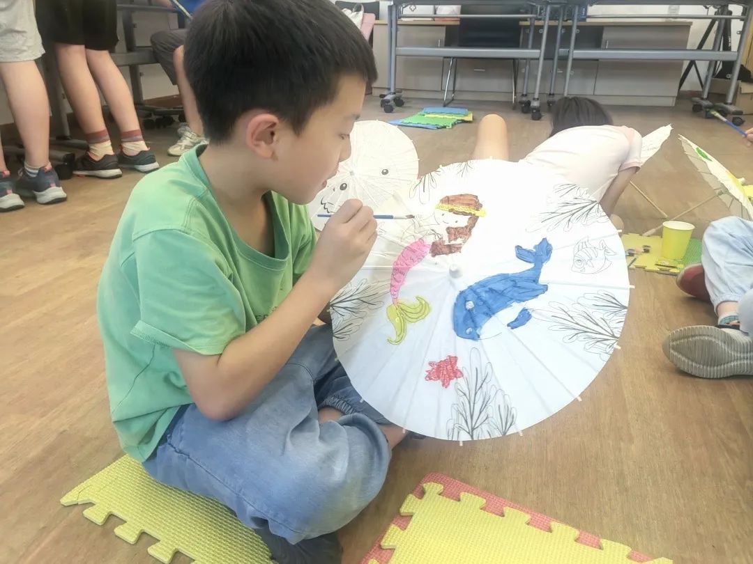 除去简单的知识科普,志愿者还准备了激发儿童创造力的艺术性活动——体验彩绘油纸伞。孩子的世界总是五彩斑斓的,孩子们在体验彩绘的同时,也能体会手作精神之美,接受优秀传统文化的熏陶,从而在体验式活动中领悟“美丽”的理念。彩绘油纸伞艺术,是一个需要用心的过程,需要孩子们悉心、耐心地在伞面上彩绘出精美的图案。美丽楼道的创建过程也是如此,需要大家一起用心维护助推美丽楼道展新颜。
