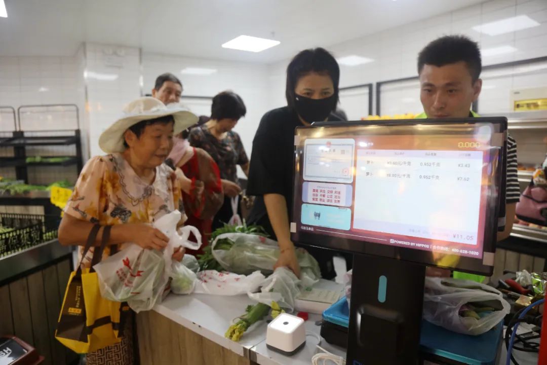 记者注意到,改造后的嘉保集贸市场不仅留住了烟火气,也更智慧便民。每个摊位前都统一配有AI智能电子秤,可以智能识别菜品,并显示营业执照和菜品信息。“蛮方便的,这样一称,价格就能自动跳出来。”在此经营7年的摊主杨建伍说。