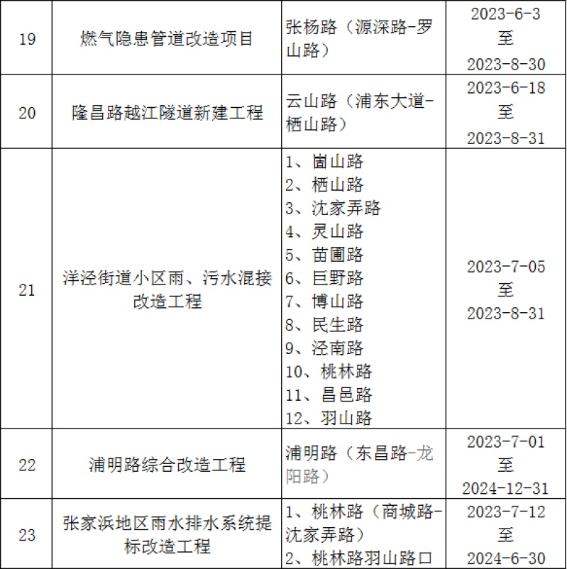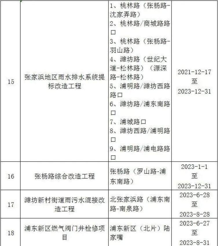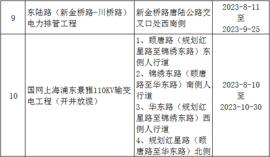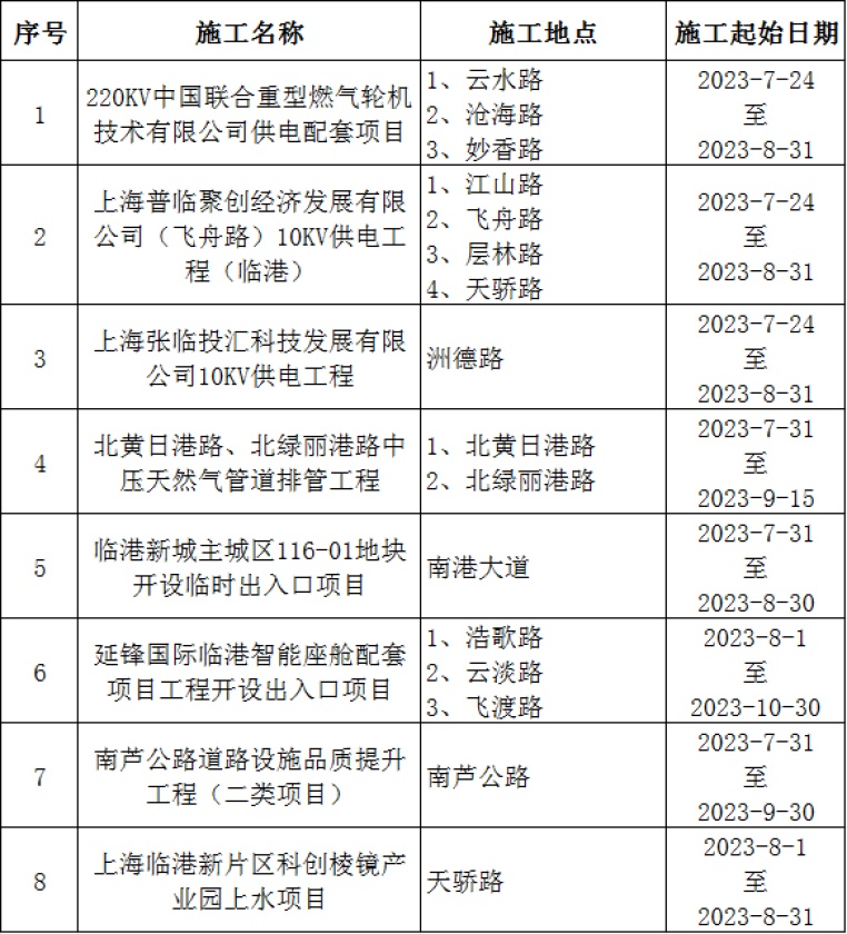 唐镇、惠南、川沙、临港等区域施工中,