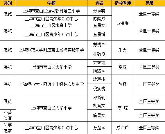 宝山区青少年活动中心通过多途径落实青少年生态文明教育工作,尽心做好活动组织及学生培育工作,共有8支队伍14名学生成功晋级总决赛。最终荣获全国一等奖3项、二等奖1项和三等奖4项,上海赛区一等奖3项、二等奖3项和三等奖8项。