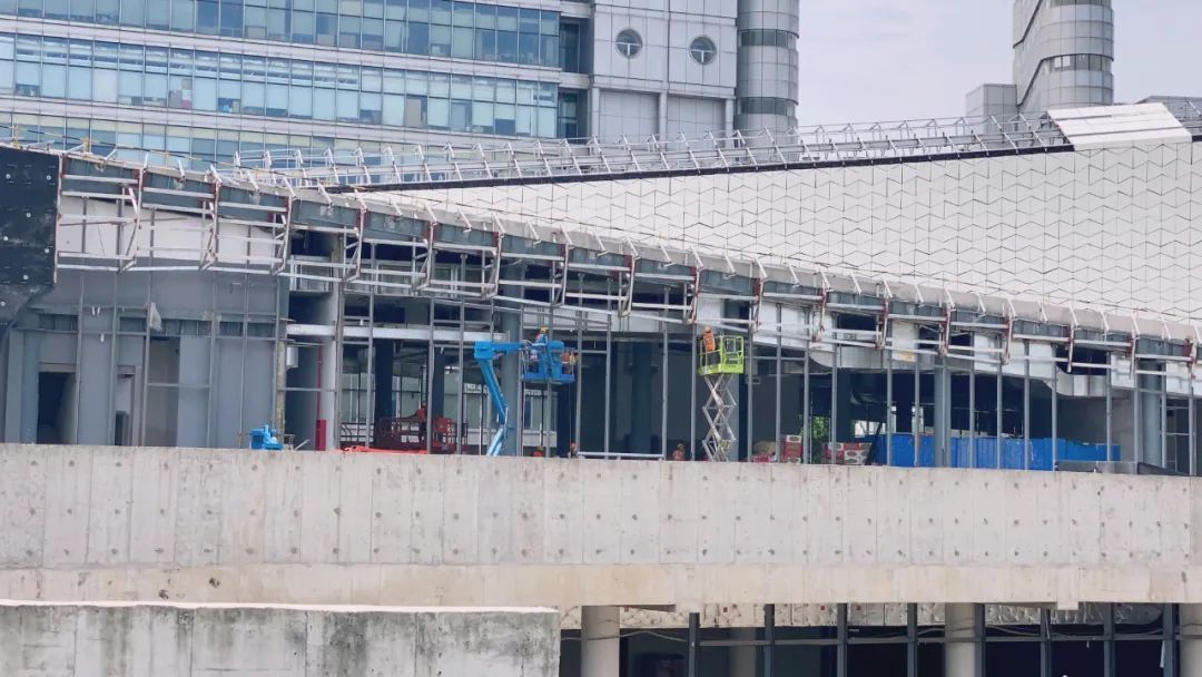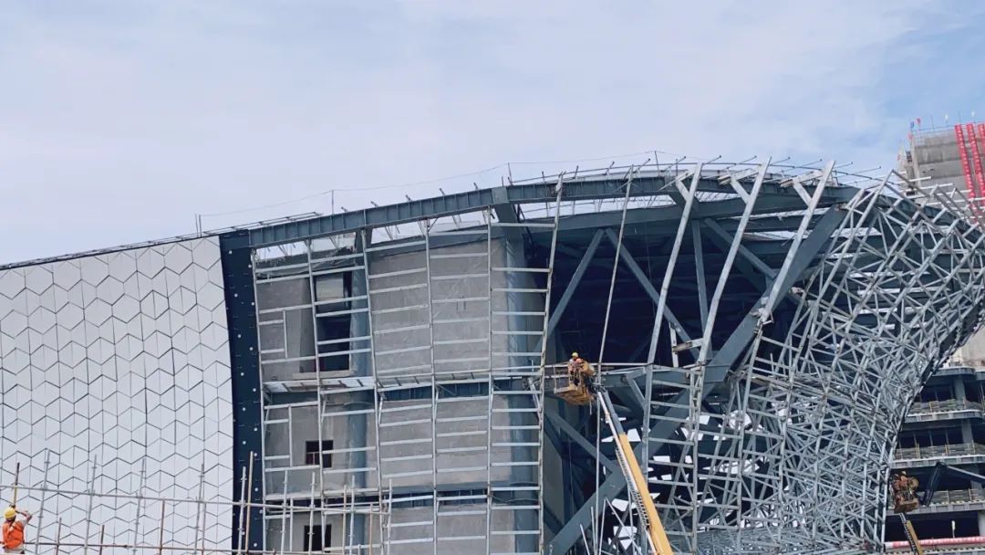 目前,商业配套楼已完成大部分幕墙立柱和横梁施工,外部白色超高性能混凝土装饰板施工进度也已近半。施工人员告诉记者,这个造型像艘大船。据介绍,商场中庭大气开阔,适合各类业态入驻,B1还设计有小型剧场,增添浓厚人文气息……