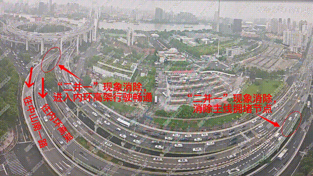 优化方案运行至今,高峰拥堵时段南浦大桥进内环引桥段平均排队长度由原先的500米缩短至300米,平均车速提升20%。