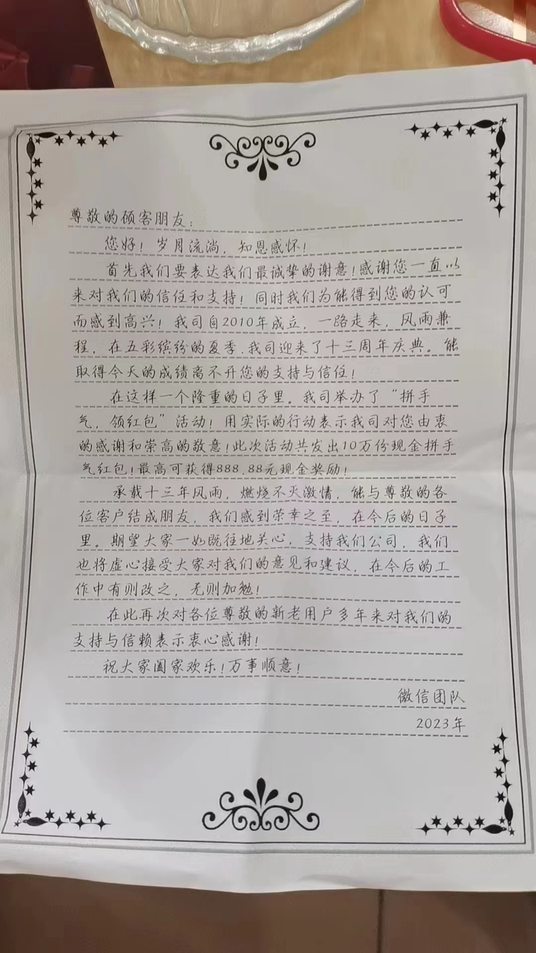 当日下午,在绿华镇经营民宿的小龚通过微信求助民警,声称收到一个陌生快递,地址门牌是正确的,但收件人姓名、电话都不对。他出于好奇打开了快递,里面有一个手机支架,还有一张印有二维码的“微信商户联盟发出的红包”卡片以及一封感谢信。在其通过微信扫描红包上的二维码进行兑奖时,微信跳转为与“材耀贸易公司”的客服对话。在发送兑奖红包照片后,客服要求小龚提供手机号码并加为好友,随后在客服的引导下被拉入一个群,“领取”红包和水果礼品,之后群里有“托”表示通过做任务能挣到大钱。
