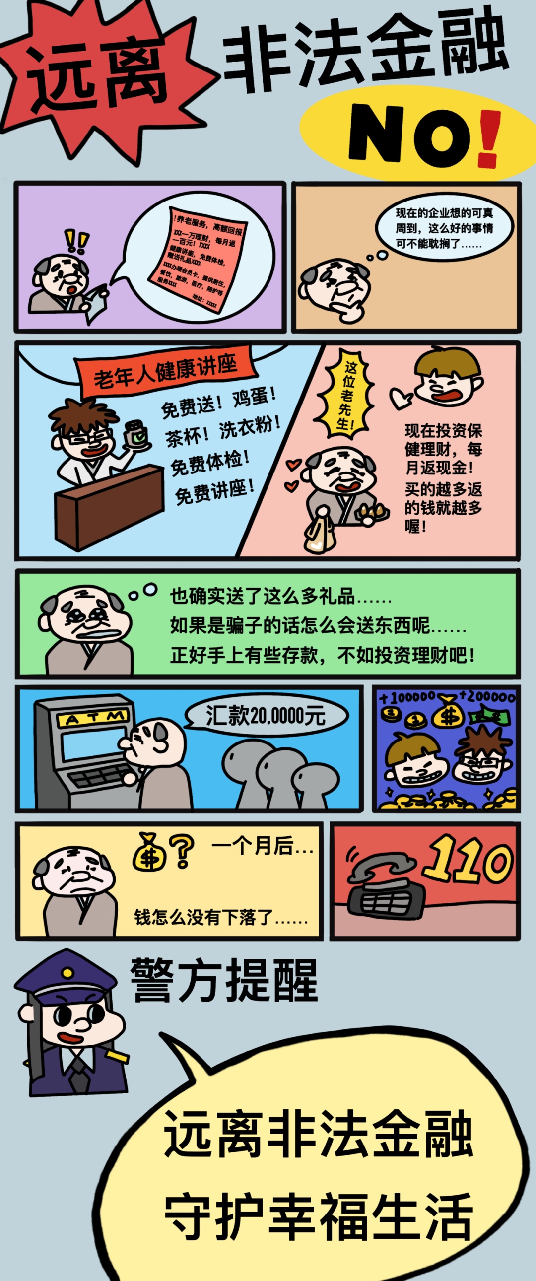 珍惜血汗钱,守好养老钱,自觉远离非法集资。大家要提高防骗识骗能力,如发现涉嫌非法集资的行为,请及时向公安机关举报。