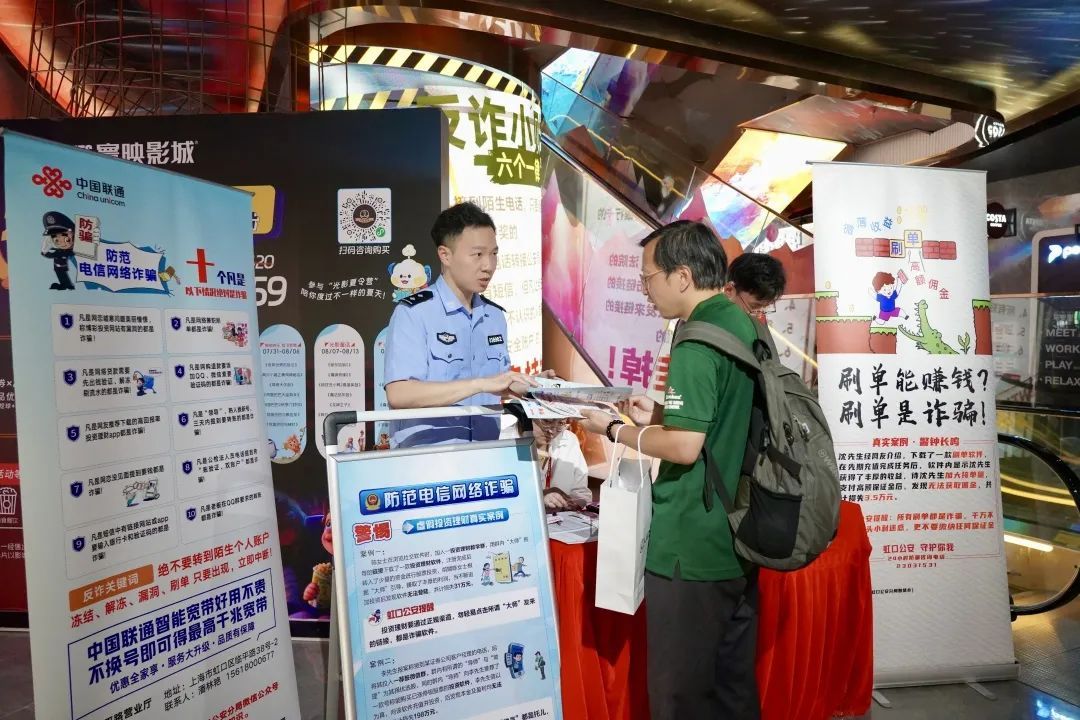 近日,反诈电影《孤注一掷》上映,再度掀起观影热潮。为提高市民的反诈意识,共同构筑反诈“防火墙”,虹口公安分局嘉兴路派出所联合上海寰映影城太阳宫店开启反诈主题公益观影活动,对前来观影的市民群众进行反诈宣传。
