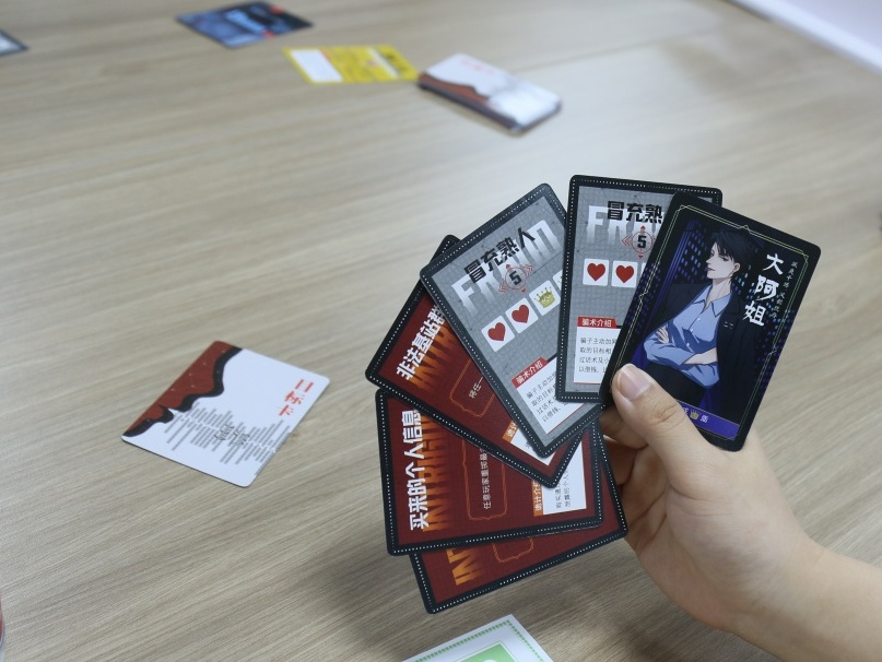活动中,玩家扮演“网络不法分子组织”成员,利用手里的技能卡对目标任务实施“电信诈骗实操”比赛,过程中还植入了多种典型的案例,让大家沉浸式体验骗局的一步步形成,通过情景式、互动式的形式,使大家能够在喜闻乐见、易于接收的情景和方式中潜移默化地受到网络安全教育。