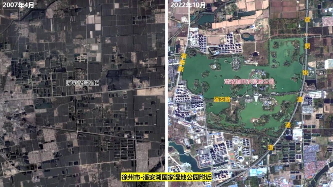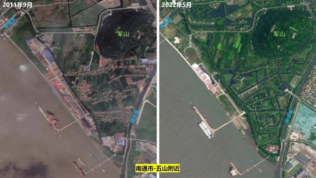 近年来,江苏坚持山水林田湖草沙一体化保护和系统治理,生态环境发生巨大改变。从卫星视角下观察,这些地方正在经历着美丽生态颜值的持续演进。