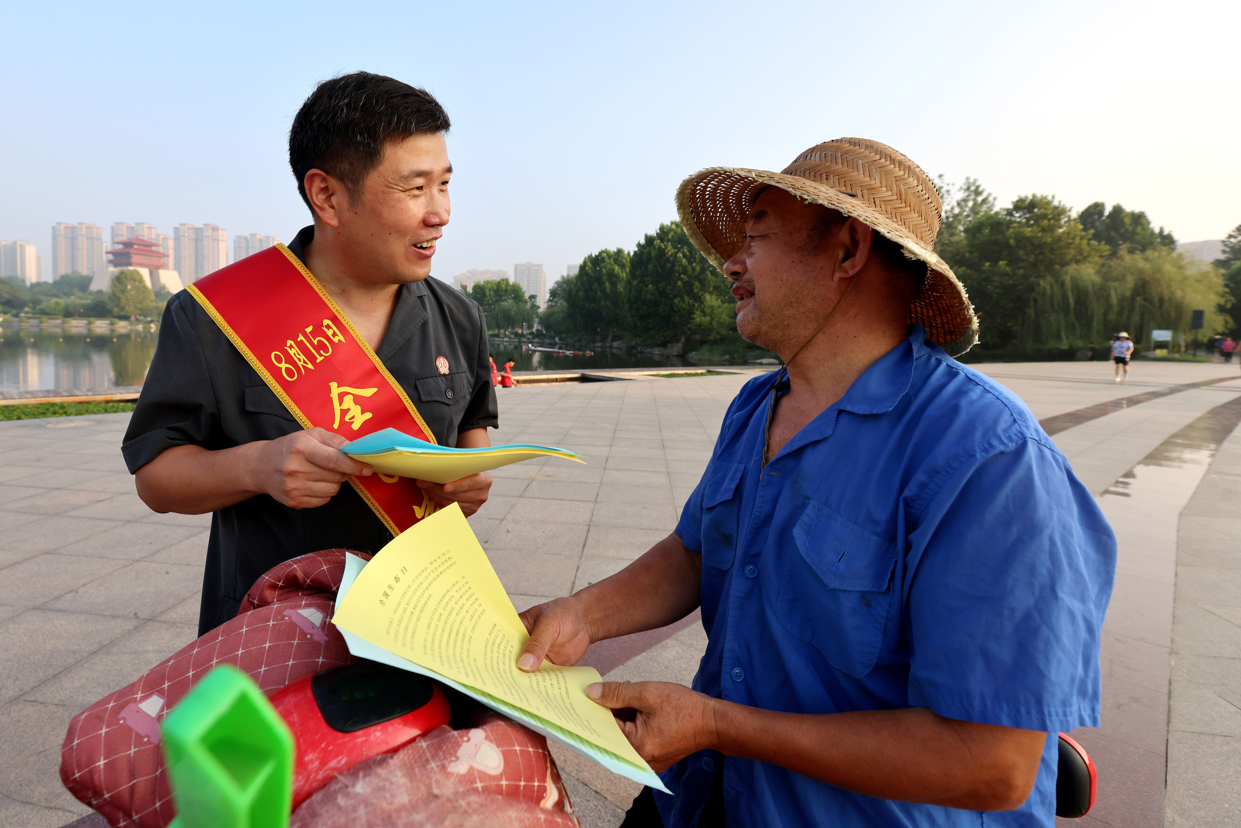 8月15日是首个全国生态日,枣庄市市中区人民法院法官在税郭镇三屯村、东湖公园等开展形式多样的主题宣传活动,提高全社会生态文明意识和生态法治观念,守护美丽家园。(大众报业·大众日报客户端记者 张环泽 通讯员 吉喆 报道)