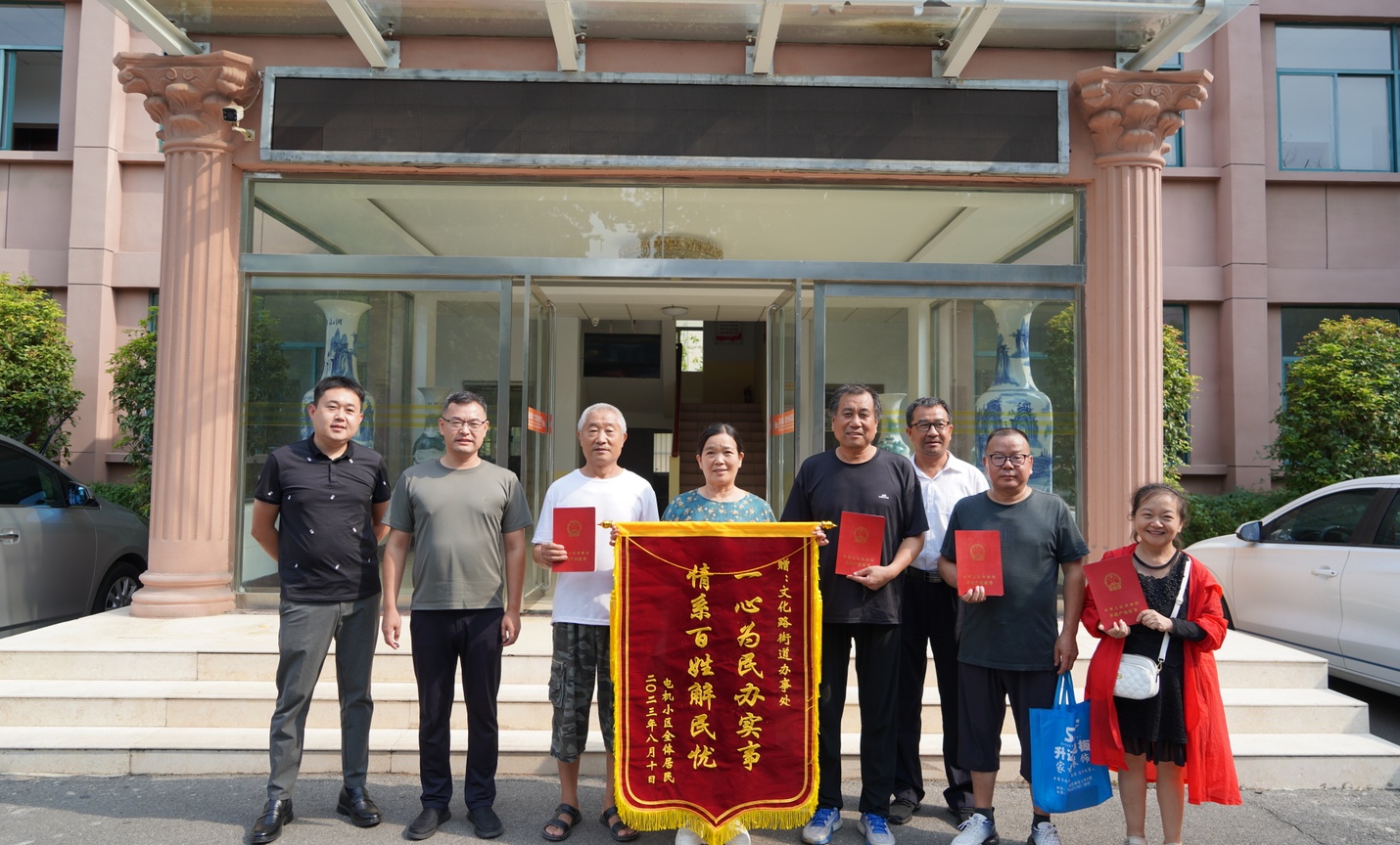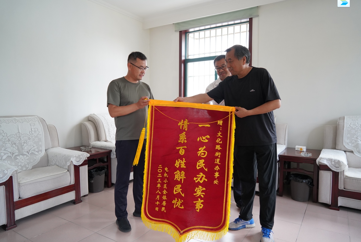 8月16日一大早,枣庄市市中区电机厂宿舍小区的居民代表将一面印有“一心为民办实事情系百姓解民忧”的锦旗送到了文化路街道办事处,对街道帮助协调解决历史遗留问题表示感谢。