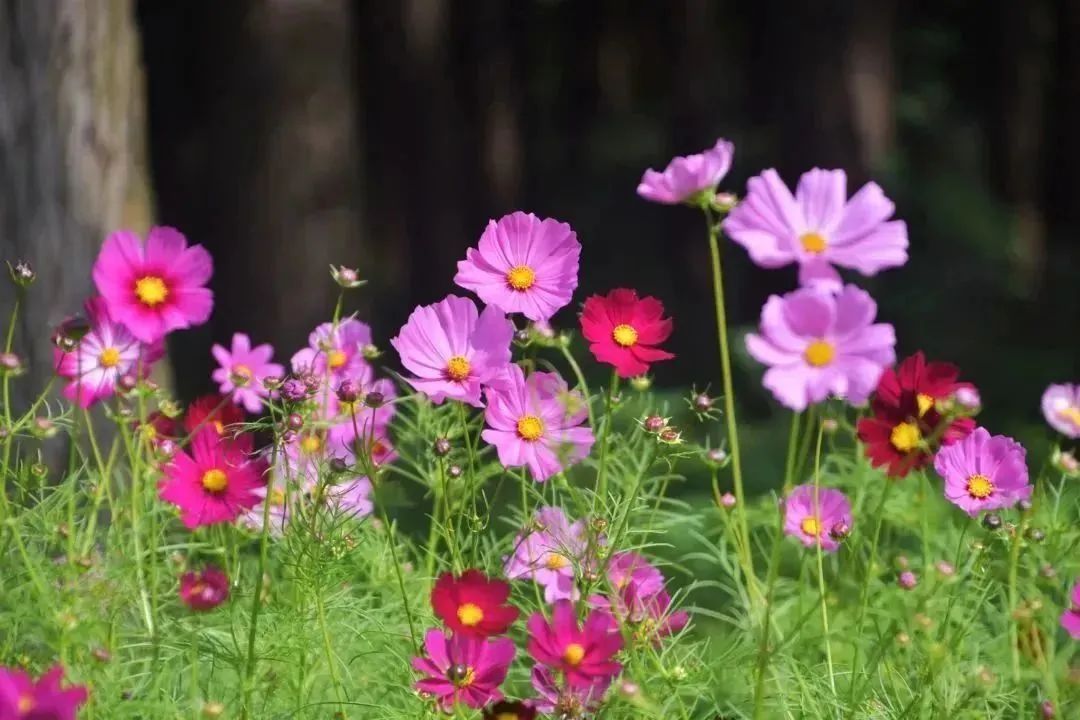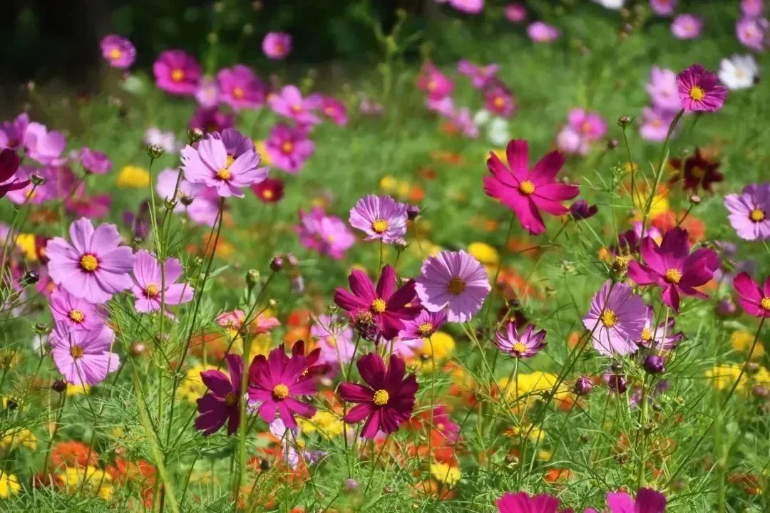波斯菊,又名秋英、格桑花。在南方地区,一般是4月播种,5月开花,到了炎热的8月,花量变少,在秋凉后,还会第二次开花。