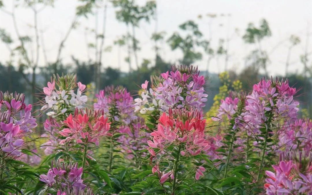 醉蝶花,又名西洋白花菜、凤蝶草、紫龙须、蜘蛛花。花茎长而壮实,花朵盛开时,总状花序形成一个丰满的花球,其花瓣轻盈飘逸,朵朵小花犹如翩翩起舞的蝴蝶,颇为有趣又非常美观。