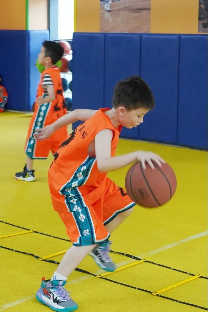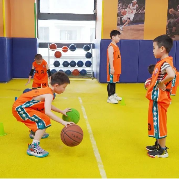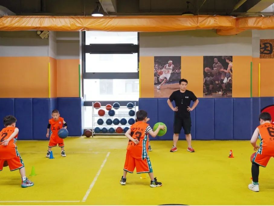 现场,一组身穿橙色队服的小朋友吸引了记者的目光,只见他们正在进行单手运球、双手交叉步运球等训练;教练在一旁认真指导,帮助他们掌握运球动作要领。据江教练介绍,这支队伍是从俱乐部300余名学员中挑选出的优秀潜力股,他们的平均年龄在6至8岁左右,主要是进行专业的比赛训练,培养他们以后去打职业联赛。