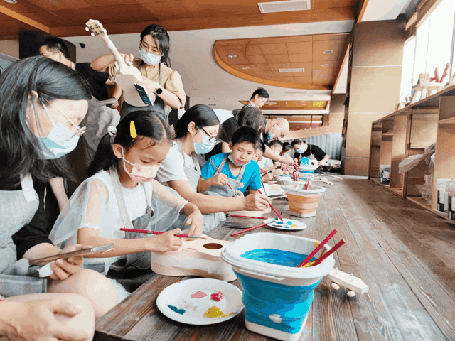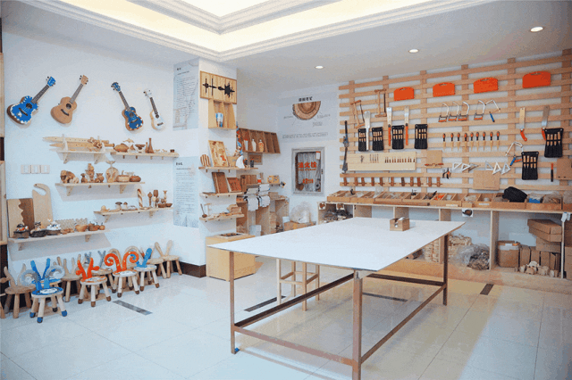 这里的手作体验有木作、皮具、零基础丙烯画、雕刻、奶油胶、微景观八音盒、金工等不同艺术形态,据店主介绍,体验率最高的项目便是木工手作。无论是手机支架、电风扇、床头灯还是尤克里里、八音盒、滑板都可以用木头最原始的状态呈现。在这里,小朋友可以充分发挥自己的想象力,根据自己的想法做一些设计,制作专属于自己的作品;也可以与家长合力体验手作的乐趣,增进彼此间的情感交流。