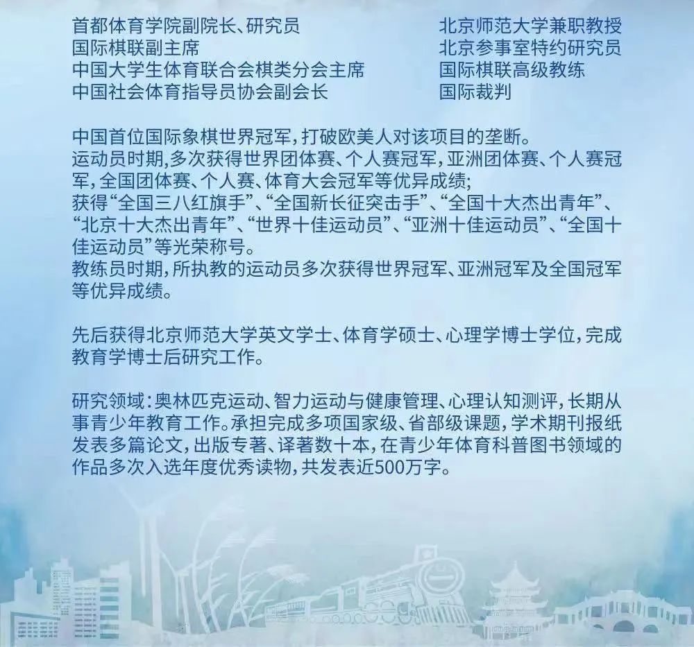 谢军老师将于8月18日(星期五)下午,在星火学校主讲“国际象棋与人才培养”主题讲座,分享她的传奇人生和独特感悟,向棋迷和学子们介绍智力运动和思维、教育、健康等领域的密切联系。
