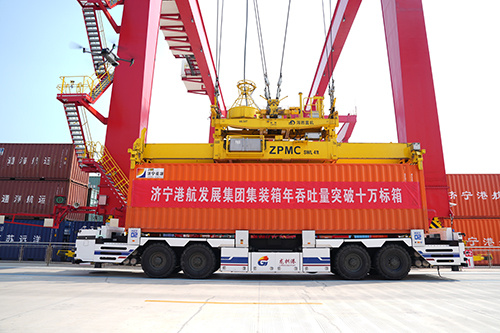 8月16日下午2点,在济宁龙拱港7#智能化集装箱泊位,一个装满玉米淀粉的“济宁港航”橙色集装箱被稳稳地吊装到“润杨集6006”号船舶上。货主来自大泽成生物科技有限公司,这次旅程,他们准备通过河江海联运的方式,将货物运往广东省,这标志着济宁能源港航集团内河集装箱年吞吐量首次突破10万标箱大关。