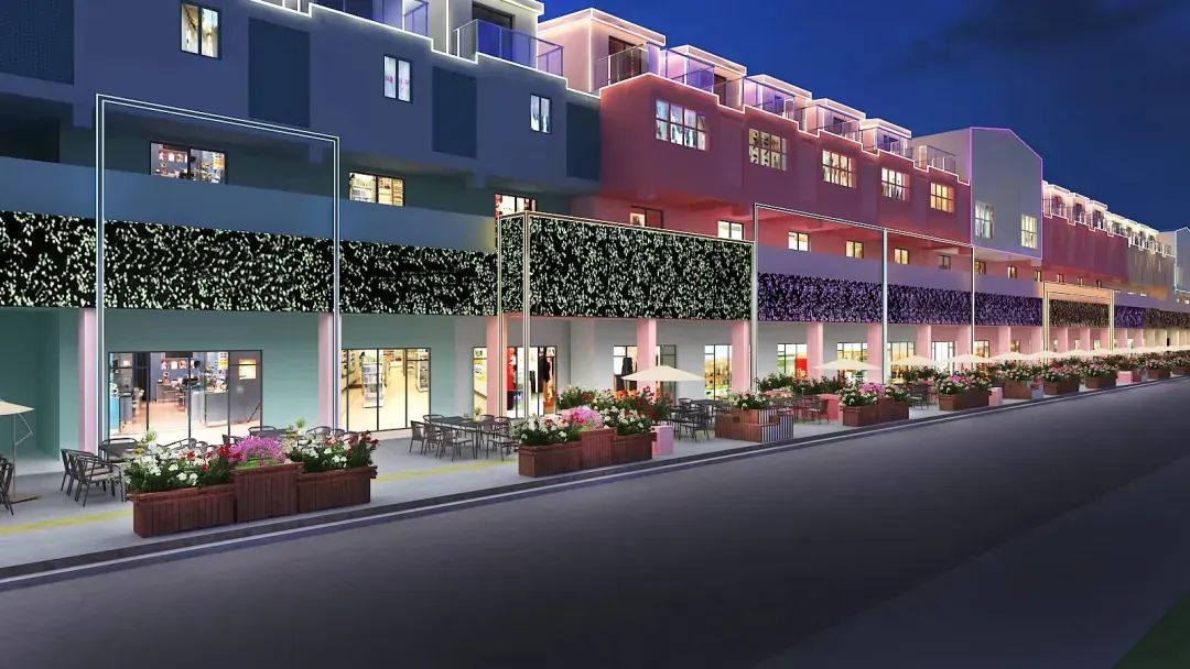 未来的未蓝街,将会变得更加舒适有趣。为将项目打造成地标IP,未蓝街在整体店招、灯光设计、各网红店设计、景观打造方面动足脑筋,努力呈现“有画面的街道、会‘呼吸’的店招、有灵魂的绿化”:花箱造型与颜色与周边立面相协调,保证街区整体性,每组花箱与休憩桌椅结合,为多重交流空间提供支持,选用四季代表性鲜花绿植打造一条“铺满鲜花的街道”。店招设计,通过高低错落的造型款式及可变换的灯光颜色、形状、速度,实现与周边墙体色彩融合。
