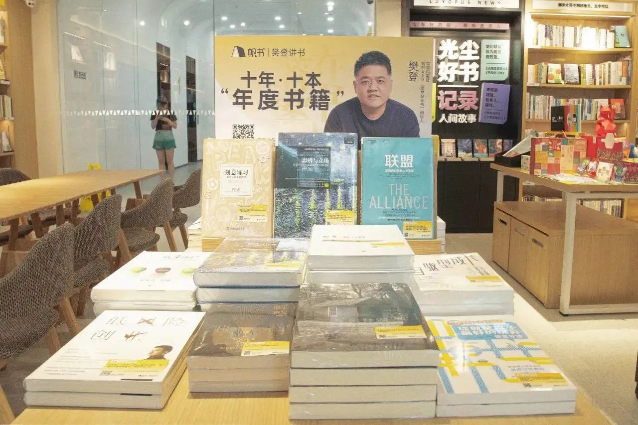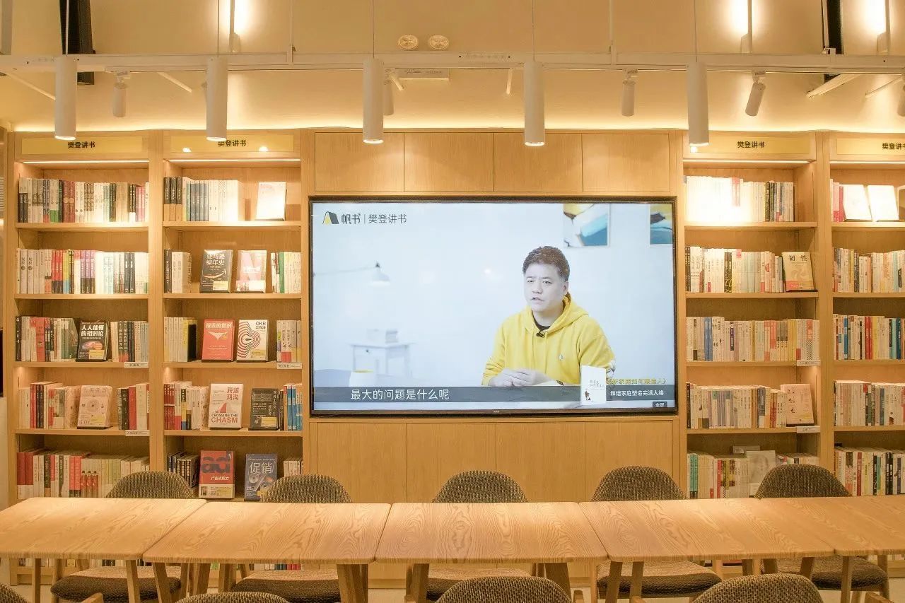 书店中融入帆书元素,借助主题推荐与展陈设计,设置了“樊登十年,十年精选好书”栏目,以及帆书听书榜TOP10榜单,同步更新帆书APP三大栏目专区,读者用手机扫码即可体验,让选择不再困难,让阅读突破边界。书店以书为切入点,将跨界产品融合,线上与线下学习相结合,致力于打造社区学习中心,不止于卖书,更是消费者的综合知识服务商与文化体验导航者。