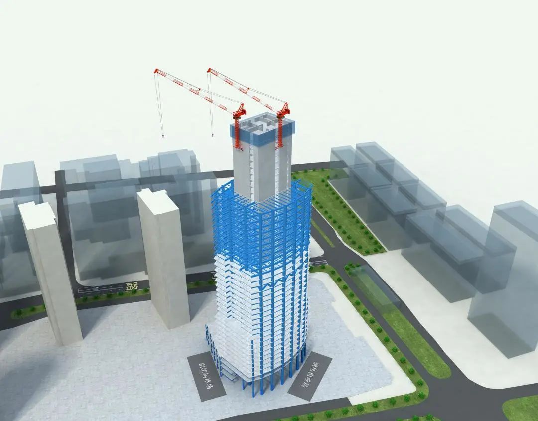 为保证核心筒内部结构施工,在综合考虑吊重、吊次、钢结构分布特点、经济效益等诸多因素后,项目选用ZSL1700型和ZSL850型附着自爬式动臂塔机开展施工作业。ZSL1700型塔机最大工作幅度55米、最大起重重量80吨,ZSL850型塔机最大工作幅度55米、最大起重重量50吨,2台动臂塔机在满足互装、互拆作业要求的同时,能够安全、高效满足大型钢结构等吊装任务,为项目土建、钢结构快速施工提供了保障。目前,ZSL850型动臂塔机正在进行回转机构安装,ZSL1700型动臂塔机即将进场,预计9月中旬,2台动臂塔机能够完成全部安装,正式投入生产作业。