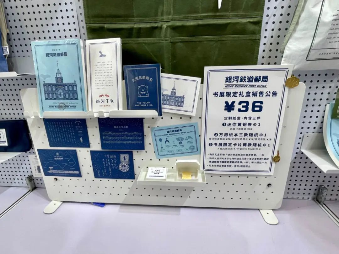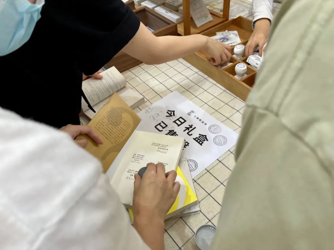 在上海书展,文创一向是一道亮丽的风景线。从文字到文创,越来越多出版社不断发挥创新创意,呈现出许多优质惊艳的文创产品。譬如近年来风头正健的上海译文出版社文创部门——“七海制造局”,在今年书展期间特别带来了新一期文创周边:“银河铁道邮局”主题系列。该系列首日供应的100套盲盒在上午就被抢购一空,来晚一步的读者不愿空手而归,便在展台排起队来,用“七海制造局”提供的作家文摘印章和活动限定邮戳章给自己的书盖章留念。