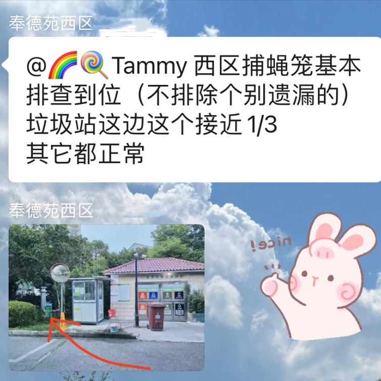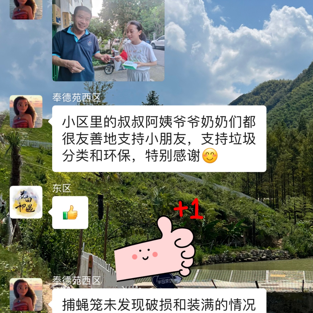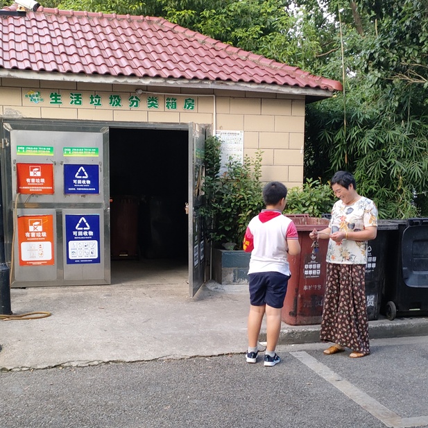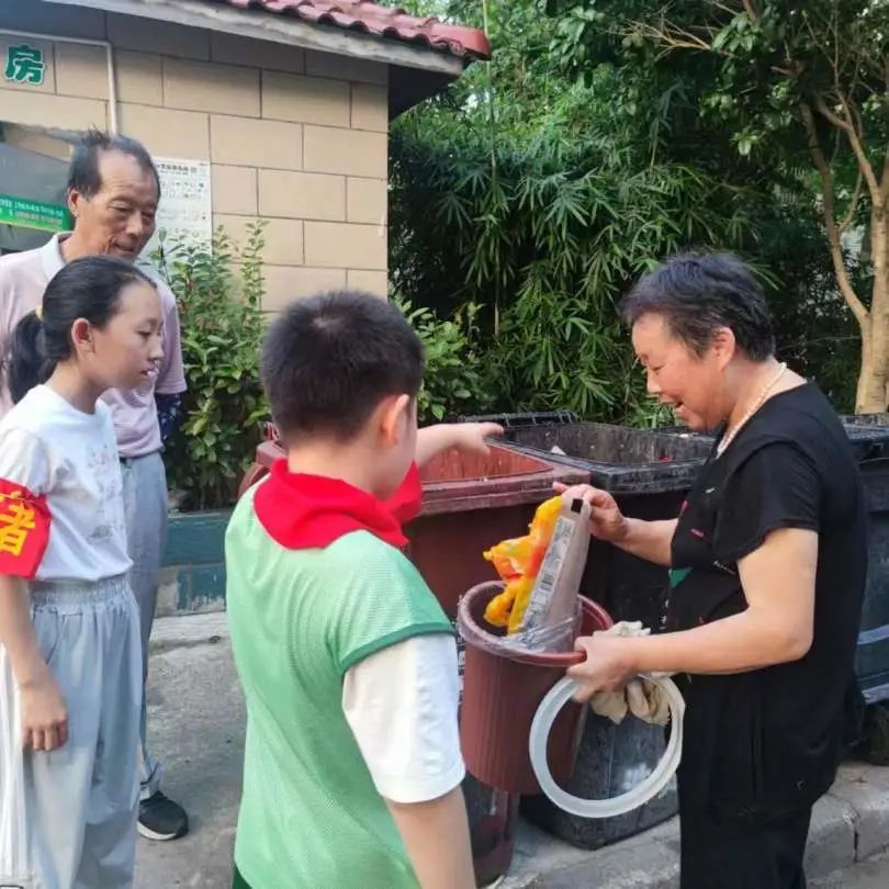 近几日的傍晚,下班归家的奉城四居居民都能在小区看到一群带红袖章的孩子。或在垃圾分类点位值守、或在小区里巡逻督查,还有的在派发“爱护环境 从我做起”的分类小册,那认真负责的样子颇有架势,让大人们都忍俊不禁。这是怎么一回事呢? 奉城四居在暑假伊始积极组织“小当家”议事会的青少年参与社区“清洁家园”活动,大家分工协作,自带抹布、垃圾桶、铁夹、扫把、水盆等,网格化分片区捡拾落地垃圾、搜索楼道散落物、巡逻休闲运动场所卫生状况……小志愿者们不怕脏不怕累,给辖区居民树立了良好榜样,激励大家共同维护生活环境,也提升了大家的志愿服务意识。 居委会趁热打铁安排了垃圾分类专题的暑期特色课程,发布了“垃圾分类环保监督”的绿色社会实践活动,让青少年有序、定时在垃圾分类点位值守,并分批次开展辖区巡逻。不但可以同时派发垃圾分类的宣传小册,还能督查捕蝇笼情况,可谓一举多得,全方位助力巩卫工作。 垃圾分类点位值守 + 辖区巡逻 督查捕蝇笼破损、满溢情况