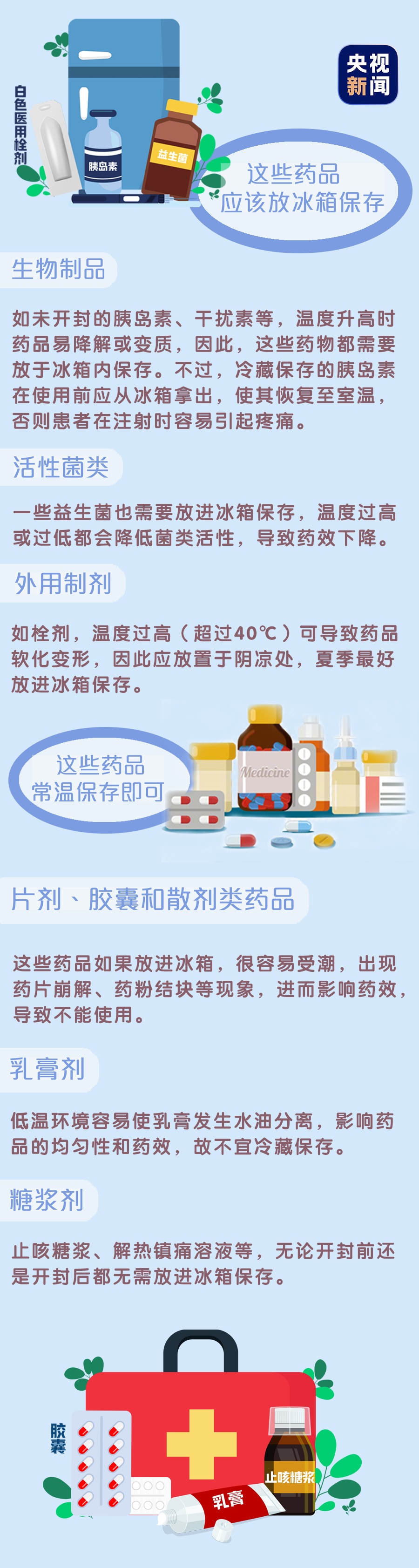 避光或遮光保存,也经常出现在药品说明书上,两者有什么区别呢?避光是指避免阳光直射。一般来说,所有药品都应避光保存,不宜放在窗边或者阳台等阳光容易照射的地方。遮光是指用不透光的容器存放药物,例如,可以将需要遮光保存的药物放在避光盒内或棕色的药瓶中。有些药品在稍高的温度下,会发生性状或者化学结构的变化,甚至产生对身体有害的物质。温度在2℃~8℃的冰箱冷藏室,可以给此类药品提供一个相对低温且稳定的环境。